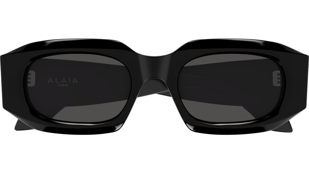Occhiali da sole Azzedine Alaïa AA0086S 001 donna con montatura rettangolare in acetato riciclato nero lucido tinta unita e lenti grigio fumo tinta unita. Linea: Lettering Logo. Codice modello: AA0086S. Codice colore: 001. Made in Italy. Rivenditore autorizzato Alaïa online. Gli occhiali vengono consegnati con custodia e accessori originali e sono coperti dalla garanzia ufficiale di 12 mesi del produttore.