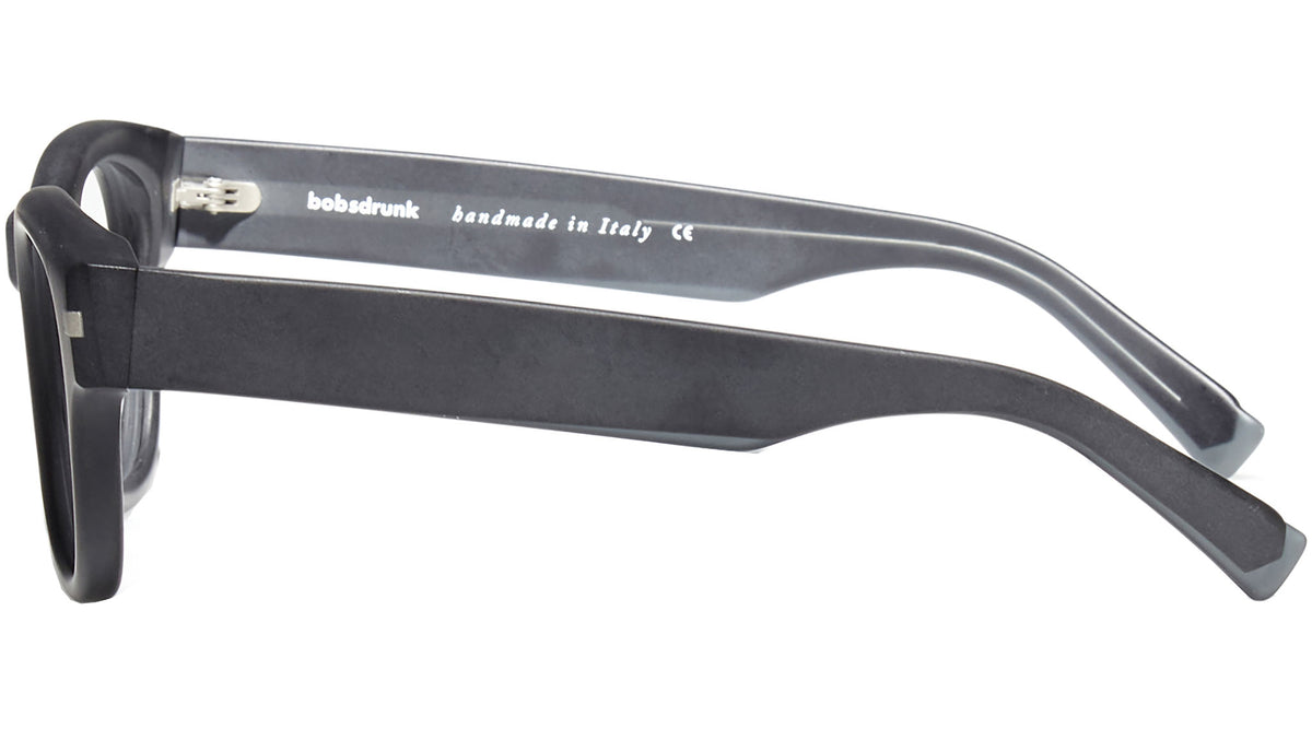 Einzelpreis proMontatura da vista Bobsdrunk Luigi codice colore 01/S in tonalità nero opaco. Prodotti senza tempo e forme audaci convivono in questa originale collezione Eyewear. Le linee sono disegnate con maestria, per creare un effetto di audace leggerezza. Ogni paio di occhiali Bobsdrunk è caratterizzato da un dettaglio emblematico, mostrato sulla parte anteriore e sulla punta delle aste, che evidenzia il valore del marchio. Rappresenta in un iconico simbolo l'unione della lettera iniziale e finale di Bobsdrunk. La scelta accurata dei materiali, la selezione dell'artigianalità e una costante ricerca cromatica sono le prerogative di ogni creazione di Bobsdrunk.