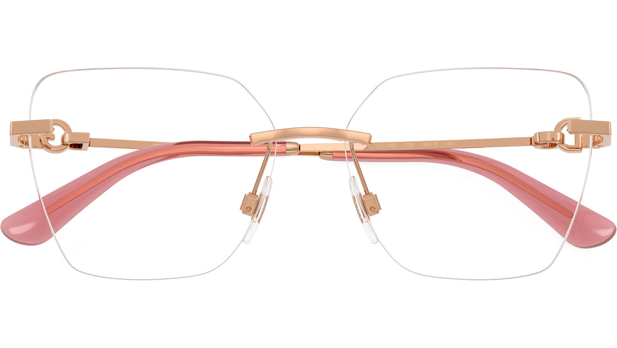 Occhiali da vista Dolce & Gabbana DG 1363 1298 donna con montatura cat eye in metallo oro rosa e lenti demo. Naselli regolabili. Linea: Dna. Codice modello: 0DG1363. Codice colore: 1298. Made in Italy. Rivenditore autorizzato Dolce & Gabbana online. Gli occhiali vengono consegnati con custodia e accessori originali e sono coperti dalla garanzia ufficiale di 12 mesi del produttore.