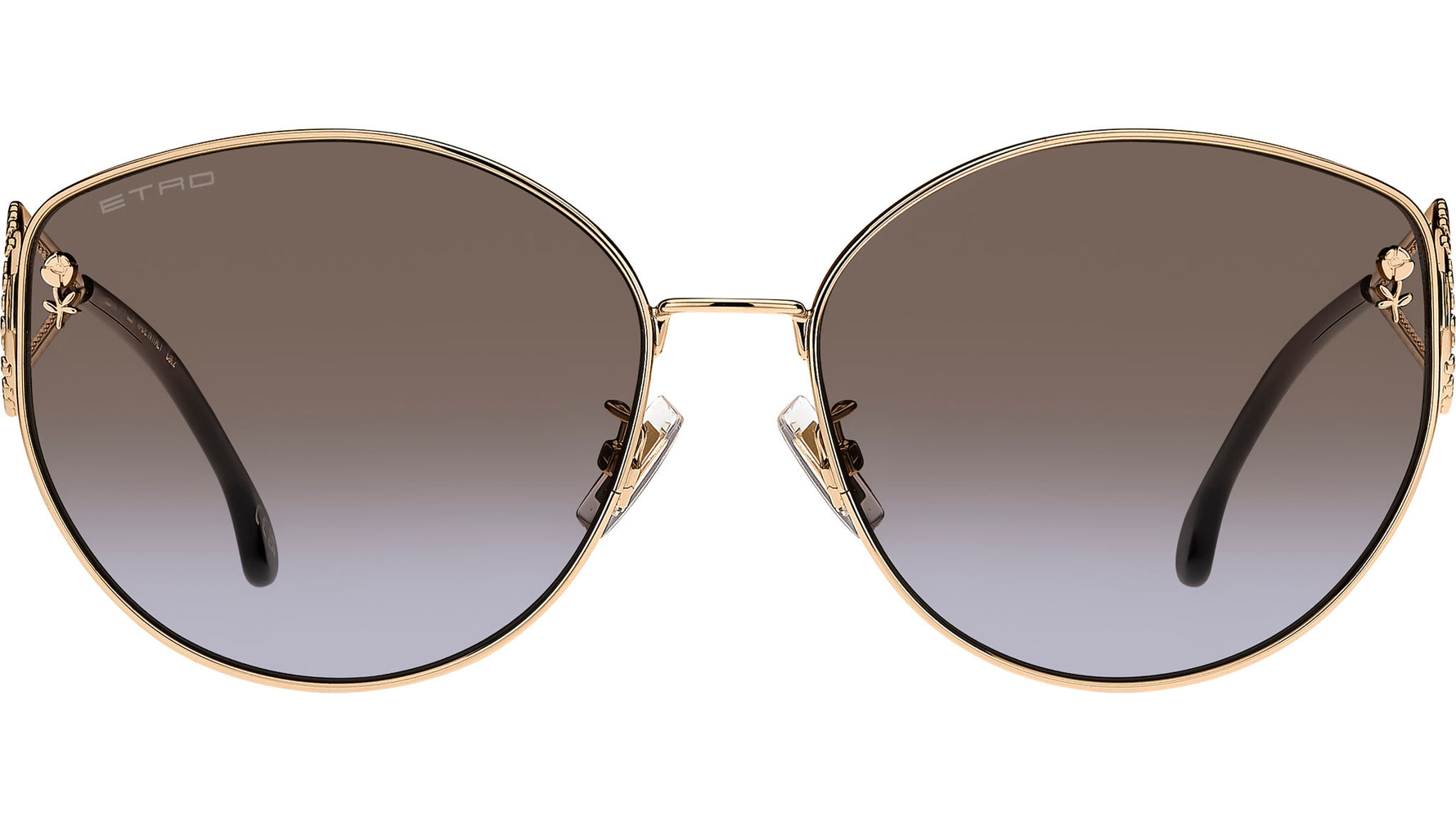 Occhiali da sole Etro 0072/F/S 000 QR donna con montatura cat eye in metallo oro rosa e lenti in CR-39 marrone viola sfumato. Un omaggio alla creatività e all'arte, questi occhiali da sole ETRO prendono ispirazione dalla collezione di gioielli del brand. La silhouette in metallo, leggera ed essenziale, è arricchita da aste scultoree lavorate con una tecnica di cesellatura innovativa che dona un effetto tridimensionale. Il motivo Paisley, reinterpretato nelle aste arrotondate, assicura un comfort quotidiano, mentre i dettagli floreali e il logo brillante completano un design che unisce raffinatezza e funzionalità. Linea: Etromania. Codice modello: 207872. Codice colore: 000 QR. Rivenditore autorizzato Etro online. Gli occhiali vengono consegnati con custodia e accessori originali e sono coperti dalla garanzia ufficiale di 12 mesi del produttore.