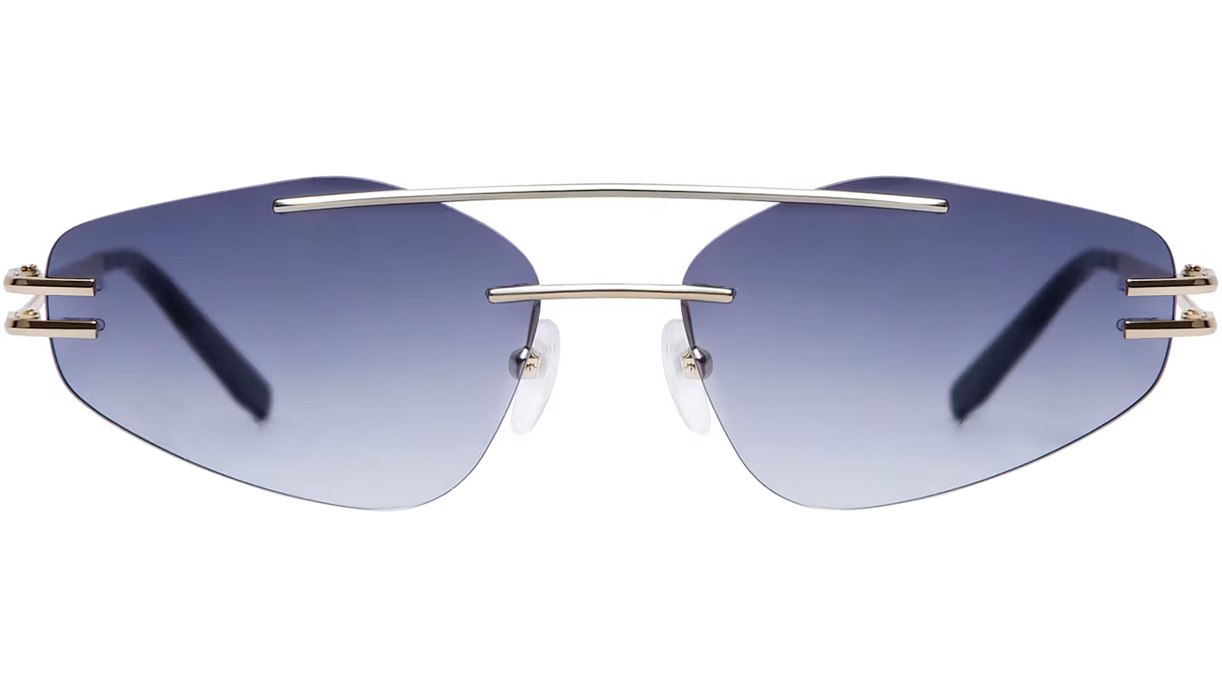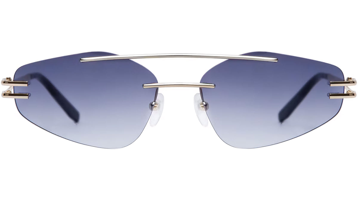 Occhiali da sole Gigi Studios modello 6860 Nona codice colore 9 in oro. Un occhiale classico di forma geometric rimless in acciaio con lenti viola sfumato. Il marchio garantisce la massima qualità costruttiva, grazie alla meticolosa selezione dei materiali, in collaborazione con i migliori fornitori italiani, tedeschi e giapponesi. Gigi Studios offre un'esperienza visiva eccezionale con lenti CR-39, confortevoli e sicure, che assorbono efficacemente i raggi UVA e UVB.