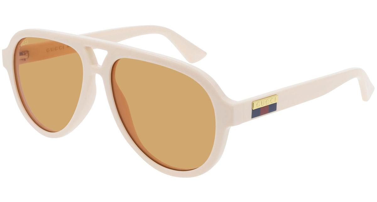 Gucci Logo sunglasses collection model GG0767S 004 featuring shiny ivory frame and solid orange lens. Influential, innovative and progressive, Gucci is reinventing a wholly modern approach to fashion. Under a new vision of creativity, the House has redefined luxury for the 21st century, further reinforcing its position as one of the world’s most desirable fashion houses. Eclectic, contemporary, romantic: Gucci products represent the pinnacle of Italian craftsmanship and are unsurpassed for their quality and attention to detail.