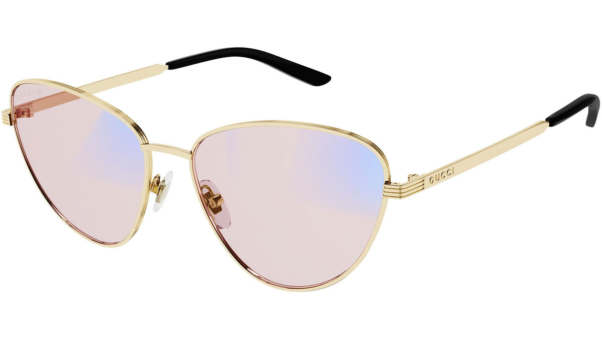 Occhiali da sole Gucci Gucci Logo modello GG0803S 005, variante colore oro endura lucido con lenti color rosa chiaro sfumato a borgogna. Montature eclettiche e modelli intramontabili: la linea sole Gucci rappresenta la punta di diamante dell'artigianalità italiana. Massima qualità e attenzione ai dettagli, per un nuovo concetto di lusso: Gucci sta reinventando lo stile, con un approccio totalmente moderno alla moda, nella sua nuova vision più creativa, eclettica e audace.