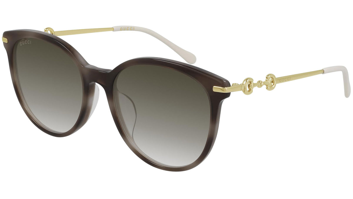 Occhiali da sole Gucci linea Gucci Logo modello GG0885SA 004, variante colore avana fango marrone striato lucido con lenti color marrone sfumato. Montature eclettiche e modelli intramontabili: la linea sole Gucci rappresenta la punta di diamante dell'artigianalità italiana. Massima qualità e attenzione ai dettagli, per un nuovo concetto di lusso: Gucci sta reinventando lo stile, con un approccio totalmente moderno alla moda, nella sua nuova vision più creativa, eclettica e audace.