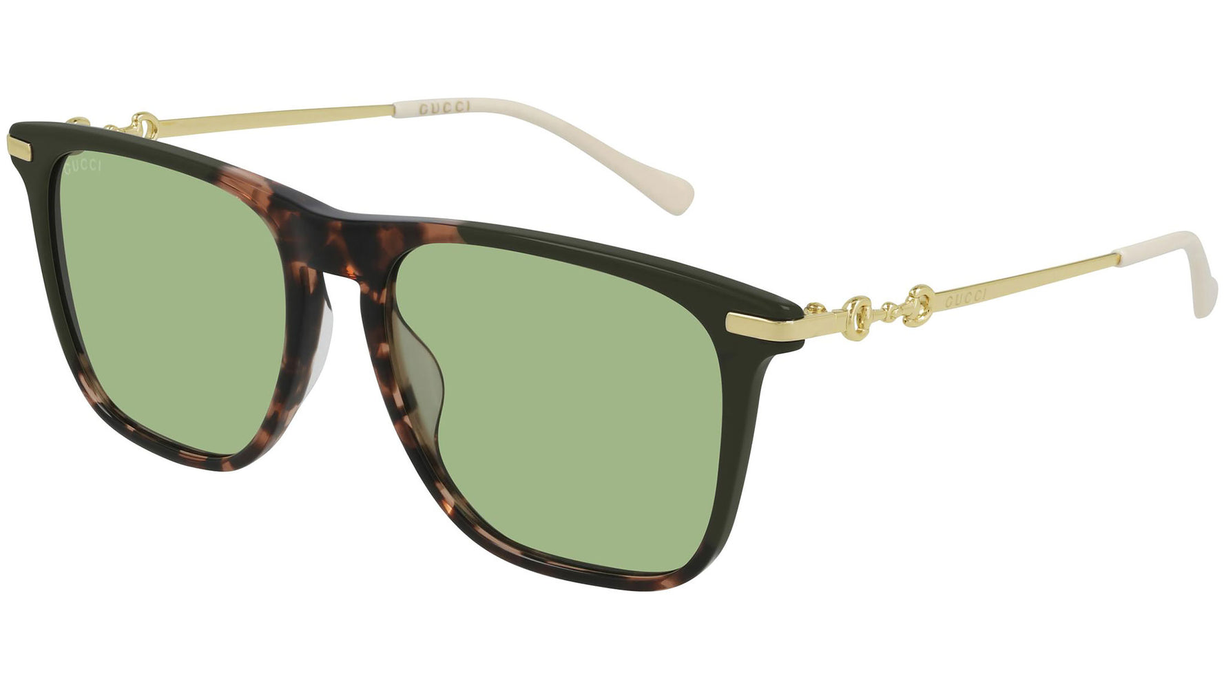 Occhiali da sole Gucci linea Gucci Logo modello GG0915S 003, variante colore lucido color block verde militare solido e mid avana con lenti color verde tinta unita. Montature eclettiche e modelli intramontabili: la linea sole Gucci rappresenta la punta di diamante dell'artigianalità italiana. Massima qualità e attenzione ai dettagli, per un nuovo concetto di lusso: Gucci sta reinventando lo stile, con un approccio totalmente moderno alla moda, nella sua nuova vision più creativa, eclettica e audace.