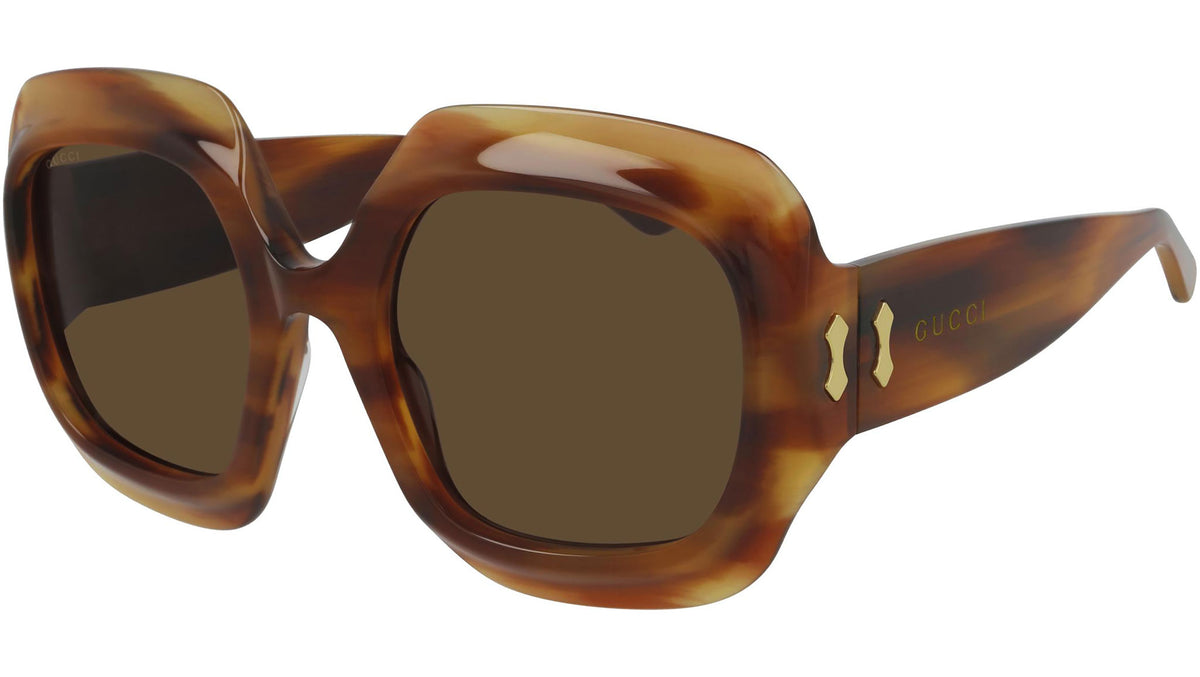 Occhiali da sole Gucci Fashion Inspired modello GG0988S 002, variante colore lucido marrone melange avana con lenti color marrone tinta unita. Montature eclettiche e modelli intramontabili: la linea sole Gucci rappresenta la punta di diamante dell'artigianalità italiana. Massima qualità e attenzione ai dettagli, per un nuovo concetto di lusso: Gucci sta reinventando lo stile, con un approccio totalmente moderno alla moda, nella sua nuova vision più creativa, eclettica e audace.