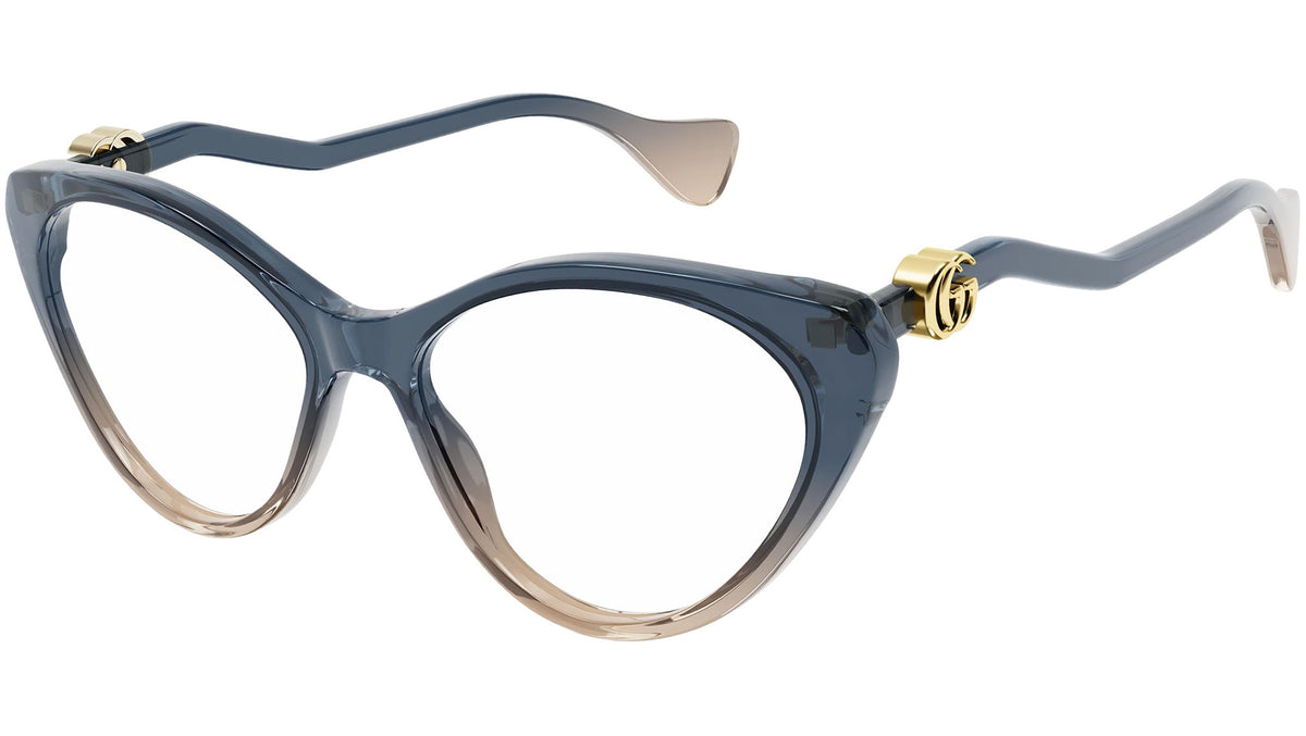 Occhiali da vista Gucci Logo modello GG1013O 002, variante colore blu petrolio trasparente lucido sfumato a rosa con astine color blu. Montature eclettiche e modelli intramontabili: la linea sole Gucci rappresenta la punta di diamante dell'artigianalità italiana. Massima qualità e attenzione ai dettagli, per un nuovo concetto di lusso: Gucci sta reinventando lo stile, con un approccio totalmente moderno alla moda, nella sua nuova vision più creativa, eclettica e audace.