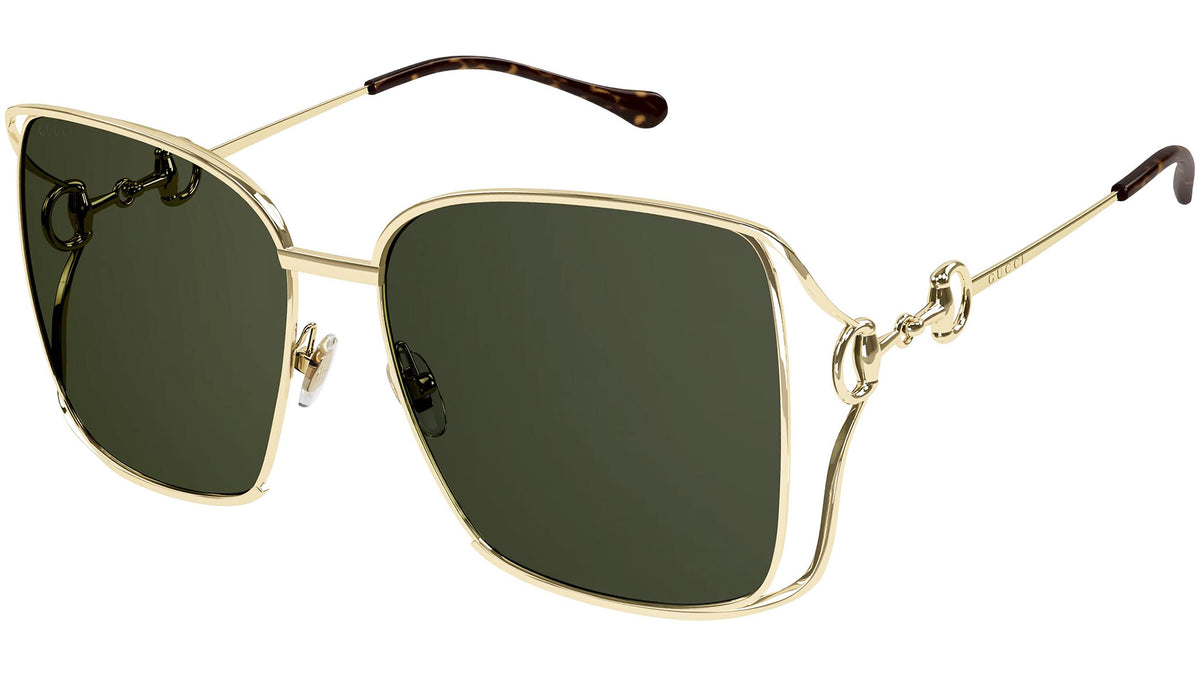 Occhiali da sole Gucci Logo modello GG1020S 003, variante colore oro endura lucido con lenti color verde bottiglia tinta unita. Montature eclettiche e modelli intramontabili: la linea sole Gucci rappresenta la punta di diamante dell'artigianalità italiana. Massima qualità e attenzione ai dettagli, per un nuovo concetto di lusso: Gucci sta reinventando lo stile, con un approccio totalmente moderno alla moda, nella sua nuova vision più creativa, eclettica e audace.