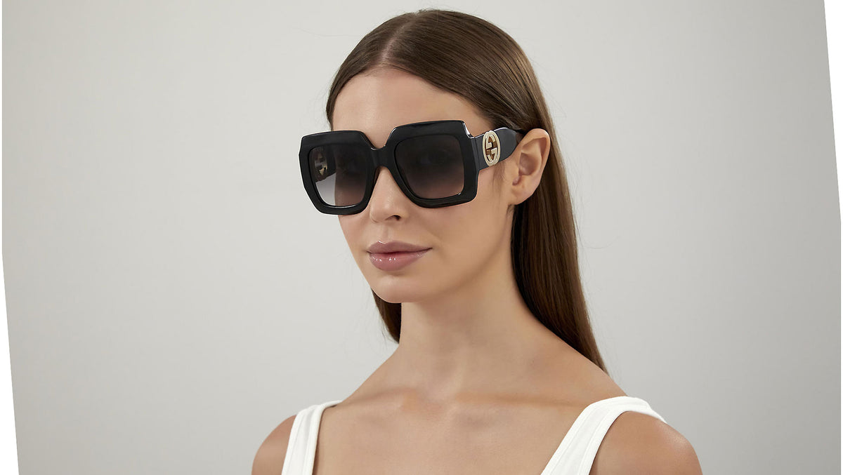 Occhiali da sole Gucci Logo modello 1022S 006, variante colore nero lucido con lenti color grigio sfumato. Montature eclettiche e modelli intramontabili: la linea sole Gucci rappresenta la punta di diamante dell'artigianalità italiana. Massima qualità e attenzione ai dettagli, per un nuovo concetto di lusso: Gucci sta reinventando lo stile, con un approccio totalmente moderno alla moda, nella sua nuova vision più creativa, eclettica e audace.