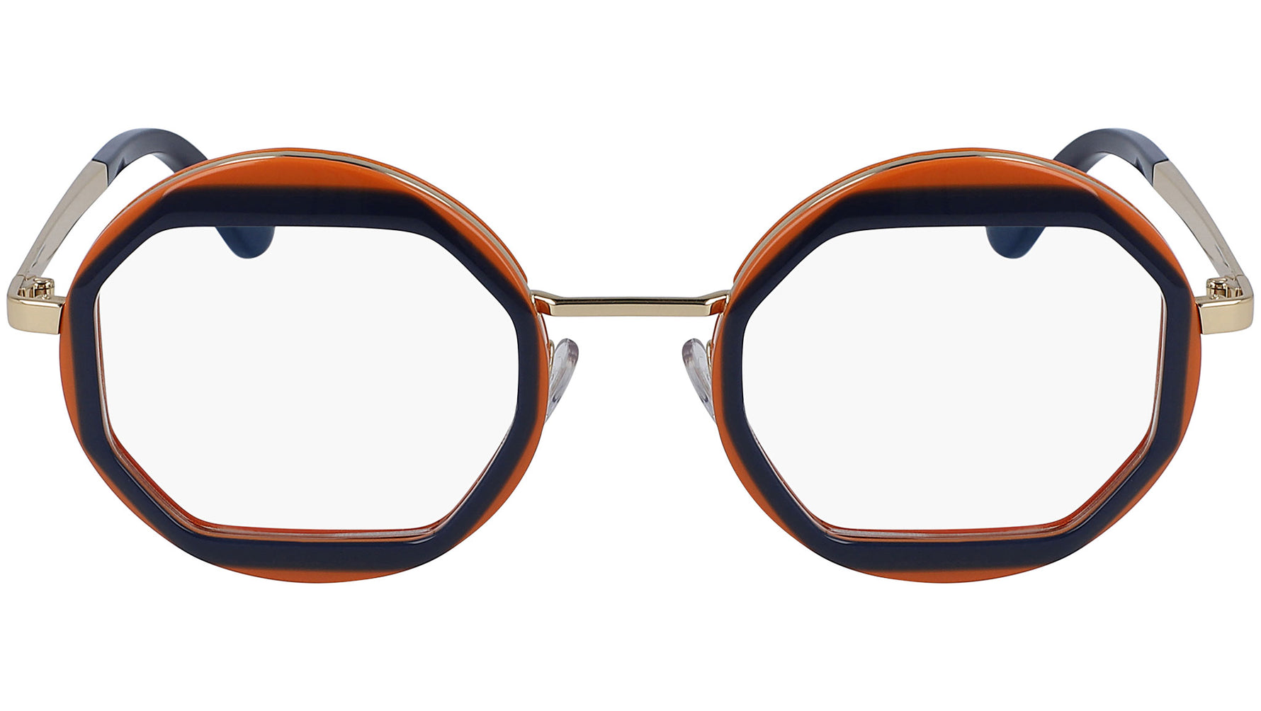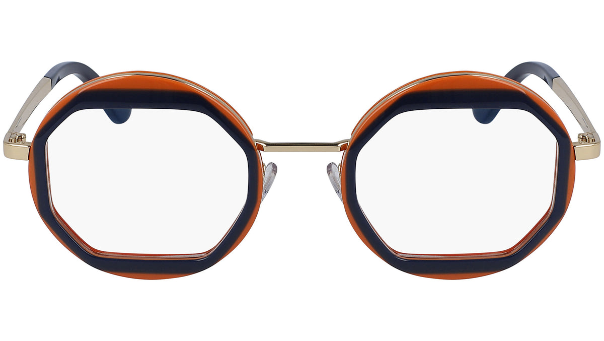 Gli occhiali da vista Marni modello ME2632 420 con montatura blu e carota e astine oro lucido. La cultura dei colori è uno dei pilastri della collezione Eyewear di Marni. Un’espressione ottimistica, gioiosa e non convenzionale dell’anima del brand, progettata e prodotta in Italia. I design vivaci, unici e inaspettati, presentano forme geometriche sfaccettate, dove la funzionalità incontra la sperimentazione, in una ricerca continua della contemporaneità.