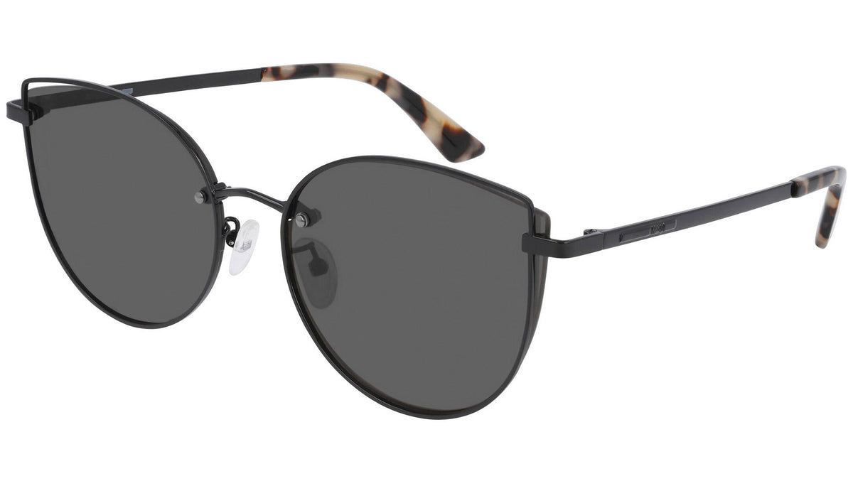 McQ sunglasses collection model MQ0248SK 001 featuring shiny black frame and solid smoke lens. Provocative and irreverent, the McQ eyewear collections draw inspiration from urban streetwear and youth subcultures.