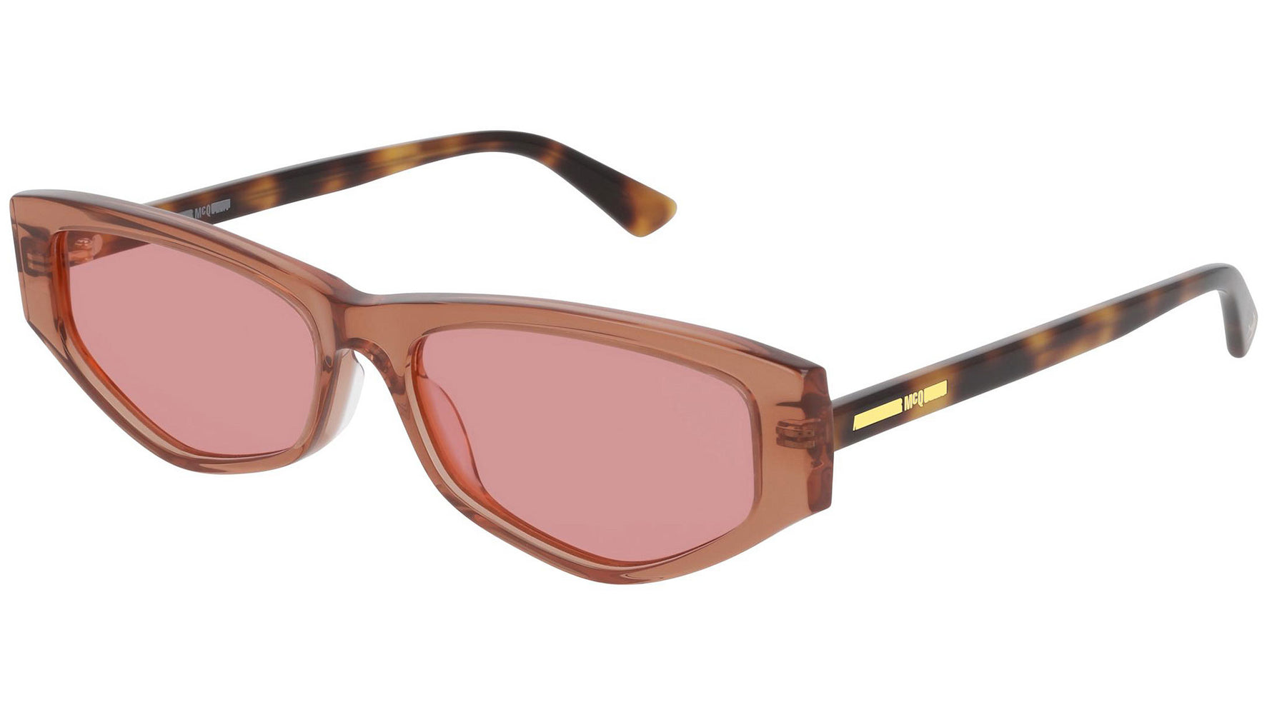 McQ sunglasses collection model MQ0250S 003 featuring shiny transparent orange frame and solid red lens. Provocative and irreverent, the McQ eyewear collections draw inspiration from urban streetwear and youth subcultures.