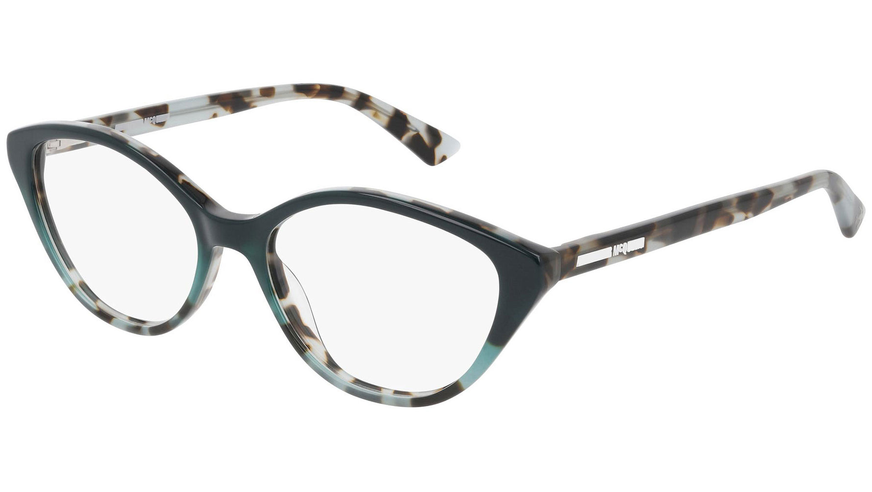 McQ optical collection model MQ0253O 004 featuring shiny gradient petrol havana frame and havana temple. McQ design is a play on everyday styles. The innovative cut lenses are applied into edgy shapes for a unique look. This style is the preferred choice for making a statement. Buy your frames online and take them to your local optician to fit prescription lenses.