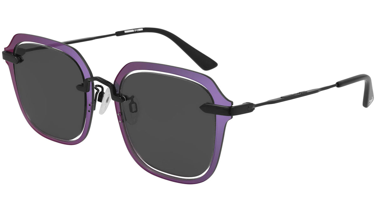 Occhiali da sole McQ linea Iconic MQ0283S 004 con montatura nero lucido e lenti color grigio fumo pieno. Provocatorio e irriverente, lo stile delle collezioni McQ Eyewear disegna uno scenario di chiara ispirazione urban streetwear, declinando l'universo delle sub culture giovanili in occhiali dalle linee uniche.