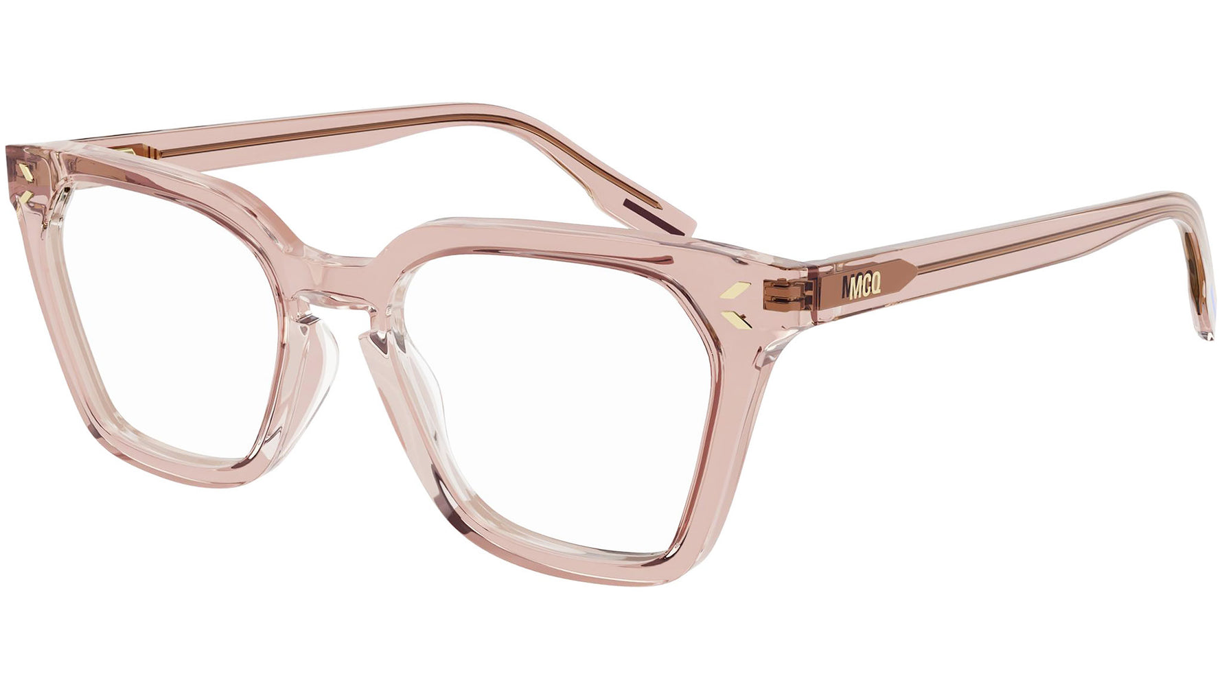 Occhiali da vista McQ Collection 0 modello MQ0327O 003, variante colore pesca chiaro trasparente lucido con astine color beige nude. Il design di McQ Eyewear si esprime in uno stile giocoso, adatto alla vita di tutti i giorni. Le lenti, dal taglio innovativo, vengono reinventate in montature dalle forme decise, per un look unico. Una vera e propria dichiarazione di indipendenza del proprio viso!