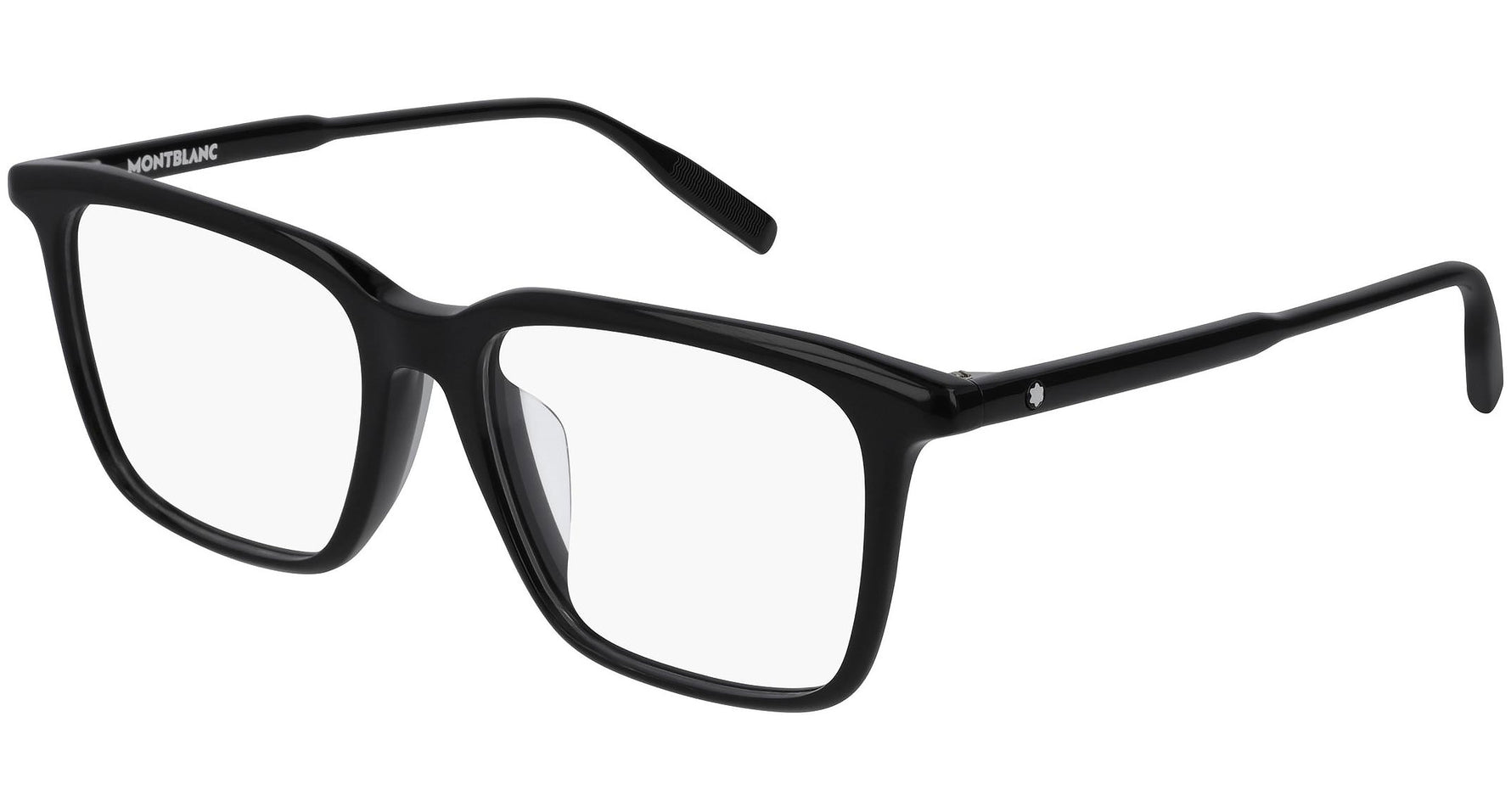 Montblanc Eyewear model MB0011OA 001 featuring shiny black frame and black temple. Montblanc revolutionized the culture of writing with breakthrough innovations. Today, the Maison continues to push boundaries and evolve the expression of fine craftsmanship across each of its product categories: the pinnacle of luxury writing instruments, timepieces, leather goods, accessories, fragrances and eyewear.
