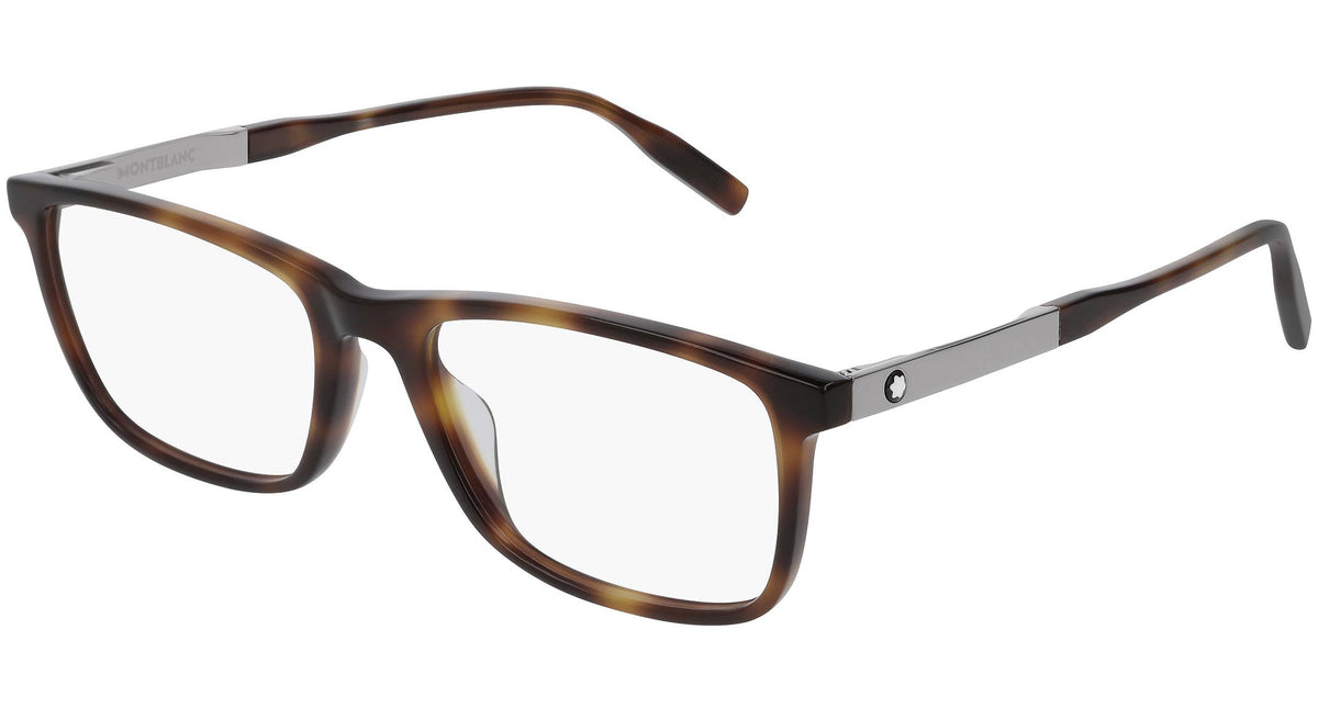 Montblanc Eyewear model MB0021O 003 featuring shiny medium havana frame and ruthenium temple. Montblanc revolutionized the culture of writing with breakthrough innovations. Today, the Maison continues to push boundaries and evolve the expression of fine craftsmanship across each of its product categories: the pinnacle of luxury writing instruments, timepieces, leather goods, accessories, fragrances and eyewear.