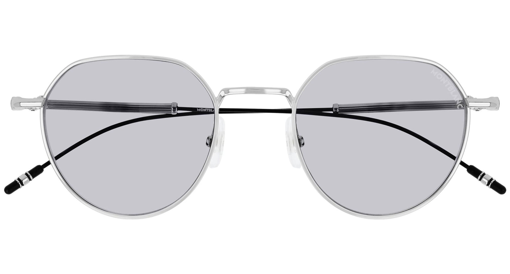 Montblanc sunglasses collection model MB0060S 001 featuring shiny silver frame and grey lens. Montblanc revolutionized the culture of writing with breakthrough innovations. Today, the Maison continues to push boundaries and evolve the expression of fine craftsmanship across each of its product categories: the pinnacle of luxury writing instruments, timepieces, leather goods, accessories, fragrances and eyewear.
