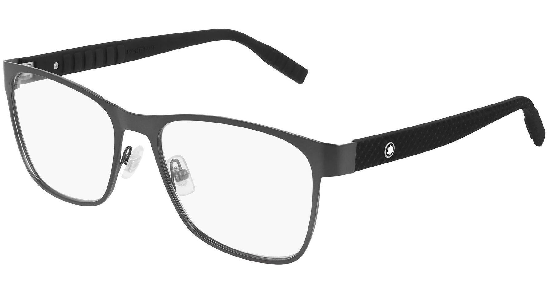 Montblanc Eyewear model MB0067O 005 featuring matte dark ruthenium frame and black temple. Montblanc revolutionized the culture of writing with breakthrough innovations. Today, the Maison continues to push boundaries and evolve the expression of fine craftsmanship across each of its product categories: the pinnacle of luxury writing instruments, timepieces, leather goods, accessories, fragrances and eyewear.