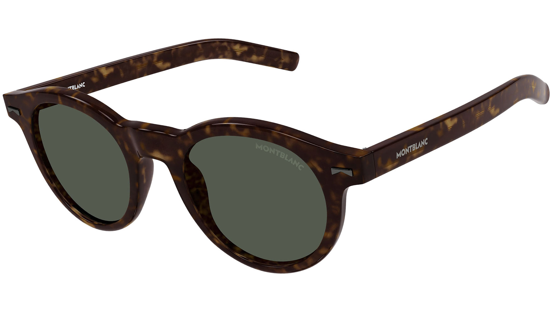 Occhiali da sole Montblanc linea Millennials modello MB0225S variante colore 002 tartaruga scuro lucido con lenti color verde tinta unita.