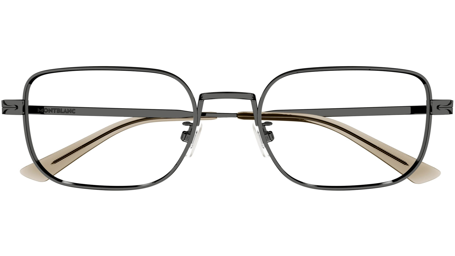 Occhiali da vista Monblanc linea Established modello MB0267O variante colore 006 rutenio scuro lucido con astine color lenti demo.