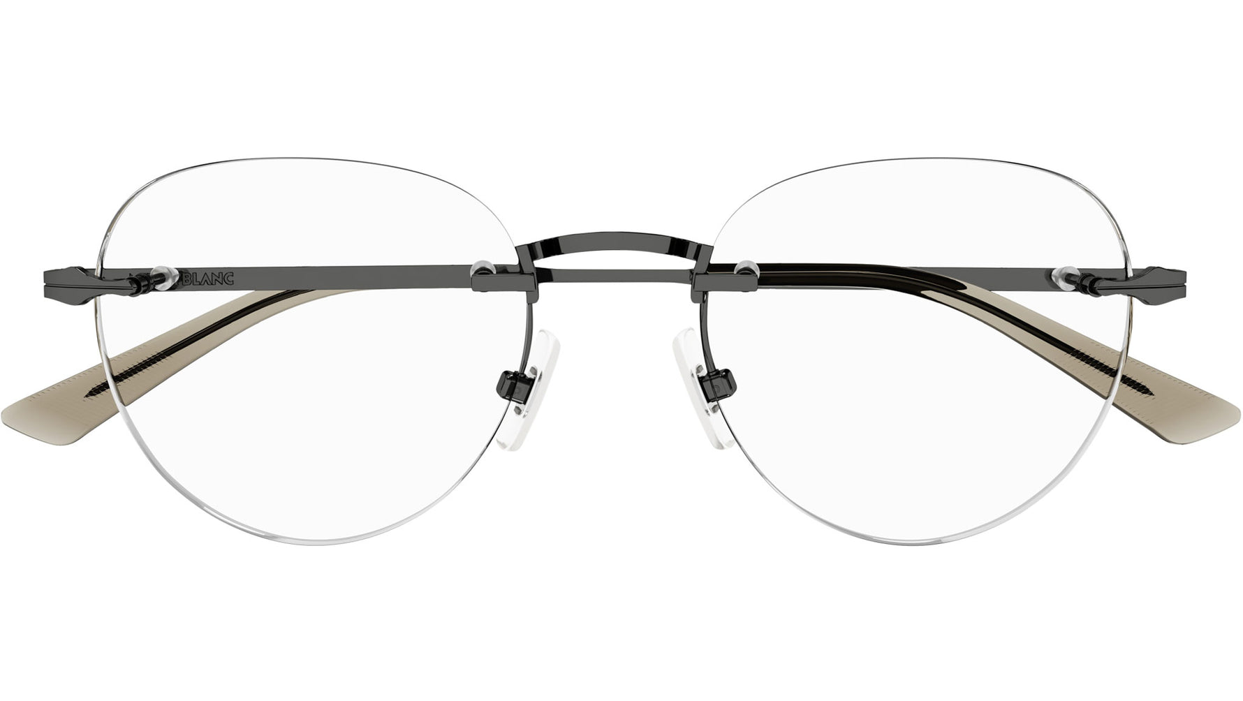 Occhiali da vista Monblanc linea Established modello MB0268O variante colore 003 rutenio scuro lucido con astine color lenti demo.