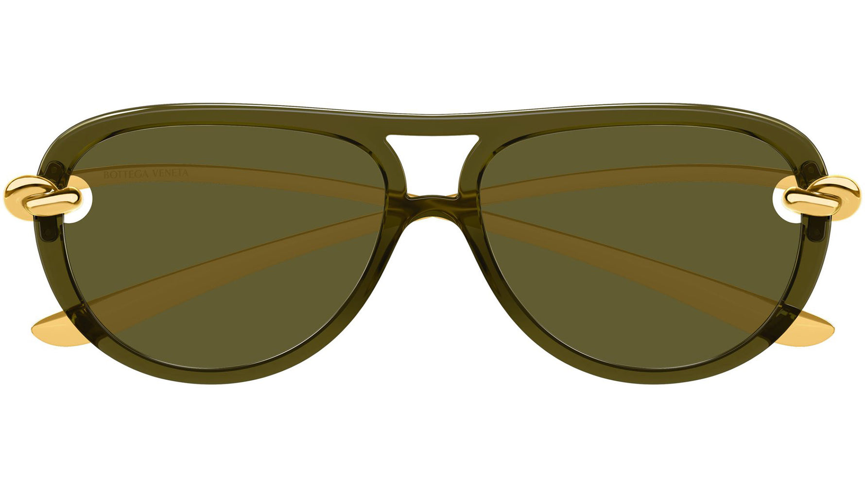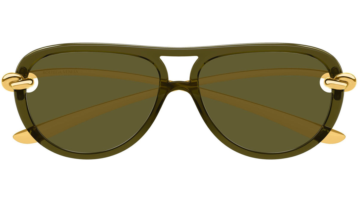 Occhiali da sole Bottega Veneta BV1418S 003 donna con montatura aviatore in inietatto verde oliva vivido trasparente lucido e lenti verde tinta unita. Linea: Signature Icons. Codice modello: BV1418S. Codice colore: 003. Made in Japan. Rivenditore autorizzato Bottega Veneta online. Gli occhiali vengono consegnati con custodia e accessori originali e sono coperti dalla garanzia ufficiale di 12 mesi del produttore.