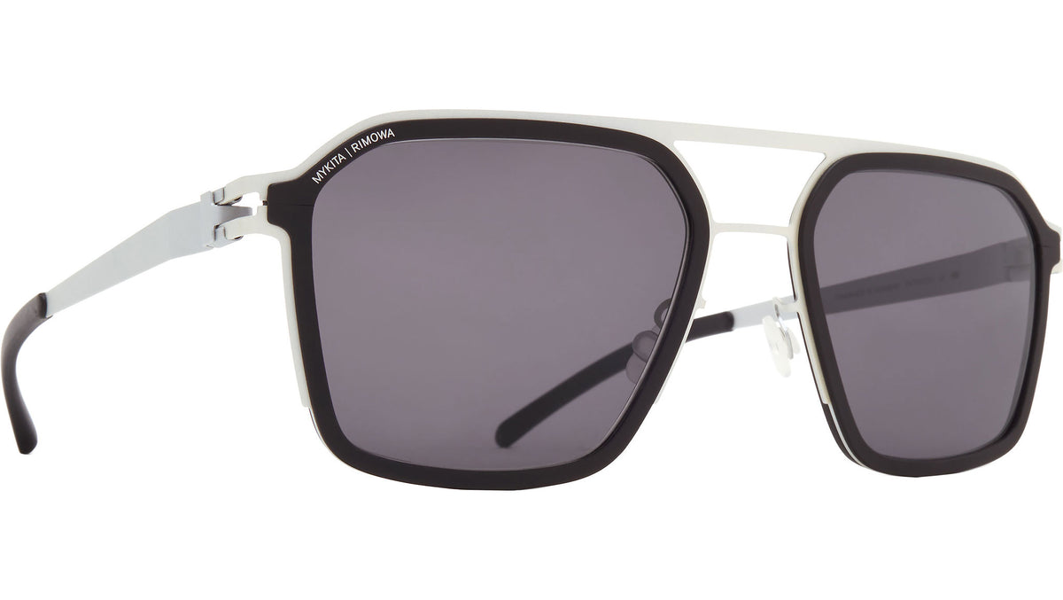 Einzelpreis proOcchiali da sole Mykita Rimowa MR003 AL1 unisex con montatura aviatore in acciaio argento bianco / nero e lenti demo. Un modello da sole HERITAGE che reinterpreta in chiave contemporanea una silhouette classica, combinando la struttura in acciaio inossidabile ultrasottile firmata MYKITA con anelli in alluminio anodizzato lavorati con precisione, nel segno delle iconiche finiture RIMOWA. Ogni esemplare è realizzato a mano con cura presso MYKITA HAUS a Berlino e viene consegnato in un astuccio co-branded, accompagnato da un certificato di autenticità. La montatura unisce acciaio circolare, dettagli in alluminio, cerniera a spirale brevettata MYKITA, terminali antiscivolo in silicone e naselli regolabili, per una vestibilità altamente personalizzabile e confortevole. Le lenti premium con trattamento antiriflesso interno offrono protezione al 100% dai raggi UVA/UVB. Linea: MYKITA | RIMOWA. Codice modello: 10087675. Codice colore: AL1. Made in Germany. Rivenditore autorizzato Mykita online. Gli occhiali vengono consegnati con custodia e accessori originali e sono coperti dalla garanzia ufficiale di 12 mesi del produttore.