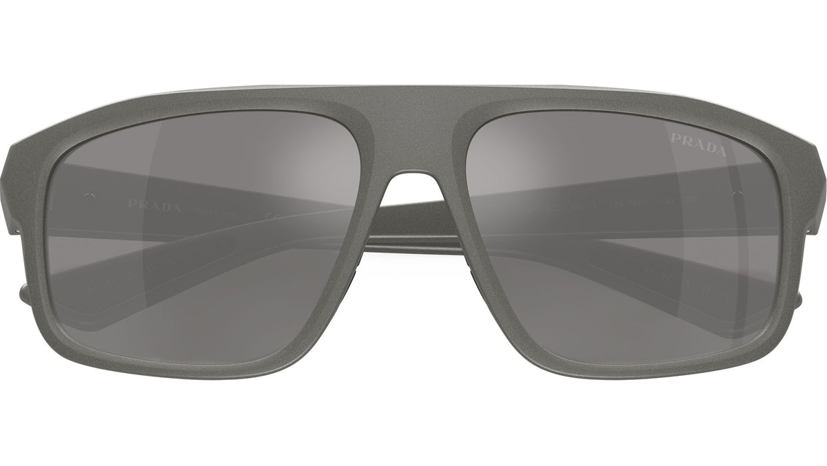 Occhiali da sole Prada Linea Rossa PS B02S 16X7W1 uomo con montatura geometrica in iniettato grigio metallico e lenti in poliammide color grigio a specchio argento. Vestibilità a ponte alto. Linea: Lifestyle. Codice modello: PSB02S. Codice colore: 16X7W1. Made in Italy. Rivenditore autorizzato Prada Sport online. Gli occhiali vengono consegnati con custodia e accessori originali e sono coperti dalla garanzia ufficiale di 12 mesi del produttore.