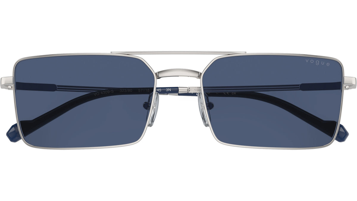 Occhiali da sole Vogue uomo modello VO4309S 323/80 con montatura rettangolare in metallo argento e lenti base 4 in policarbonato blu scuro. Naselli regolabili. Linea: Man. Codice Brand: 0VO4309S. Codice colore: 323/80. Rivenditore autorizzato online Vogue Eyewear. Ogni prodotto Vogue viene consegnato con astuccio originale e accessori ed è coperto da garanzia del produttore di 12 mesi.
