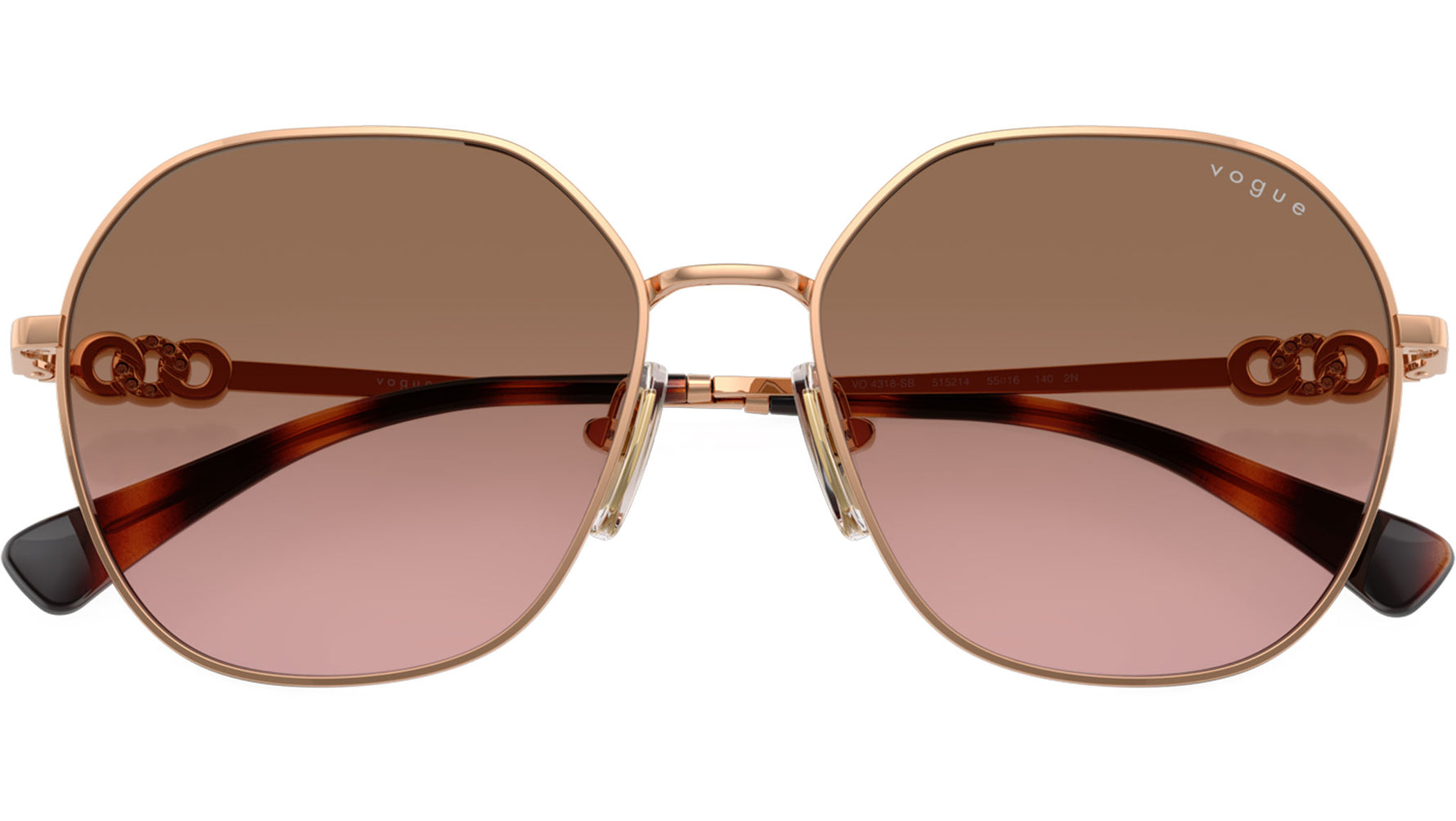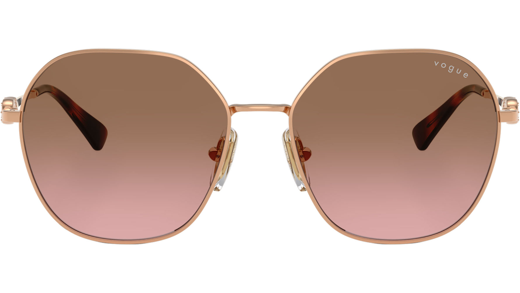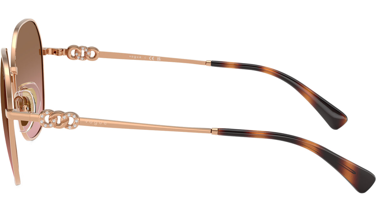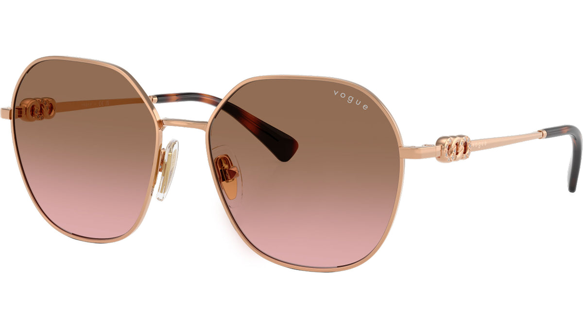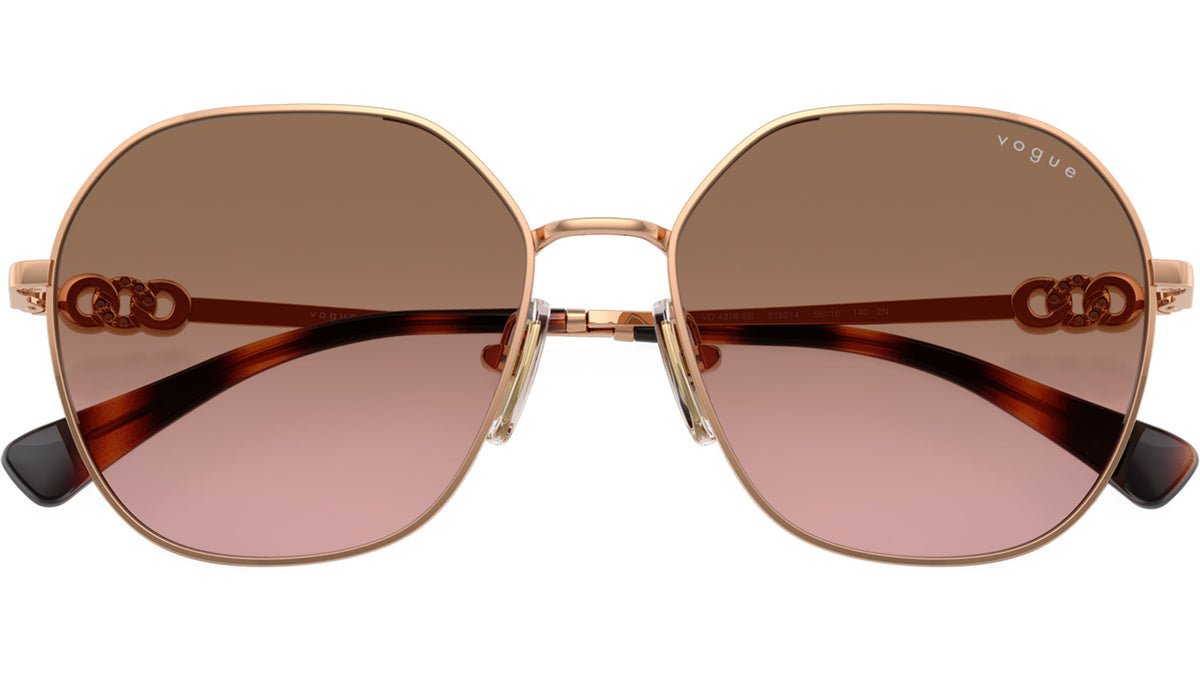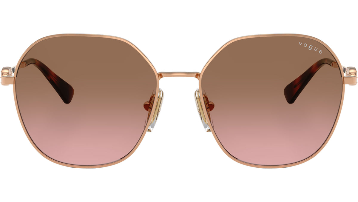 Occhiali da sole Vogue donna modello VO4318SB 515214 con montatura geometrica in metallo oro rosa e lenti base 4 in policarbonato rosa sfumato marrone. Naselli regolabili. Linea: Evergreen. Codice Brand: 0VO4318SB. Codice colore: 515214. Rivenditore autorizzato online Vogue Eyewear. Ogni prodotto Vogue viene consegnato con astuccio originale e accessori ed è coperto da garanzia del produttore di 12 mesi.