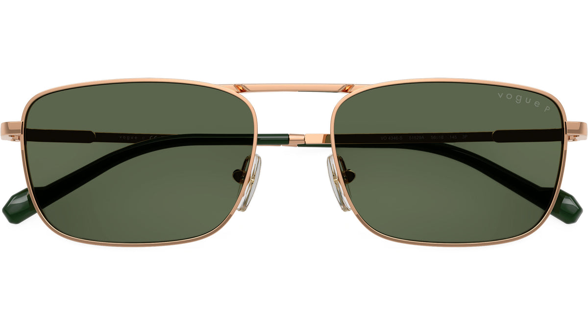 Occhiali da sole Vogue uomo modello VO4346S 51529A con montatura d-frame in metallo oro rosa e lenti base 2 in policarbonato verde scuro polarizzato. Naselli regolabili. Linea: Man. Codice Brand: 0VO4346S. Codice colore: 51529A. Rivenditore autorizzato online Vogue Eyewear. Ogni prodotto Vogue viene consegnato con astuccio originale e accessori ed è coperto da garanzia del produttore di 12 mesi.