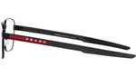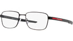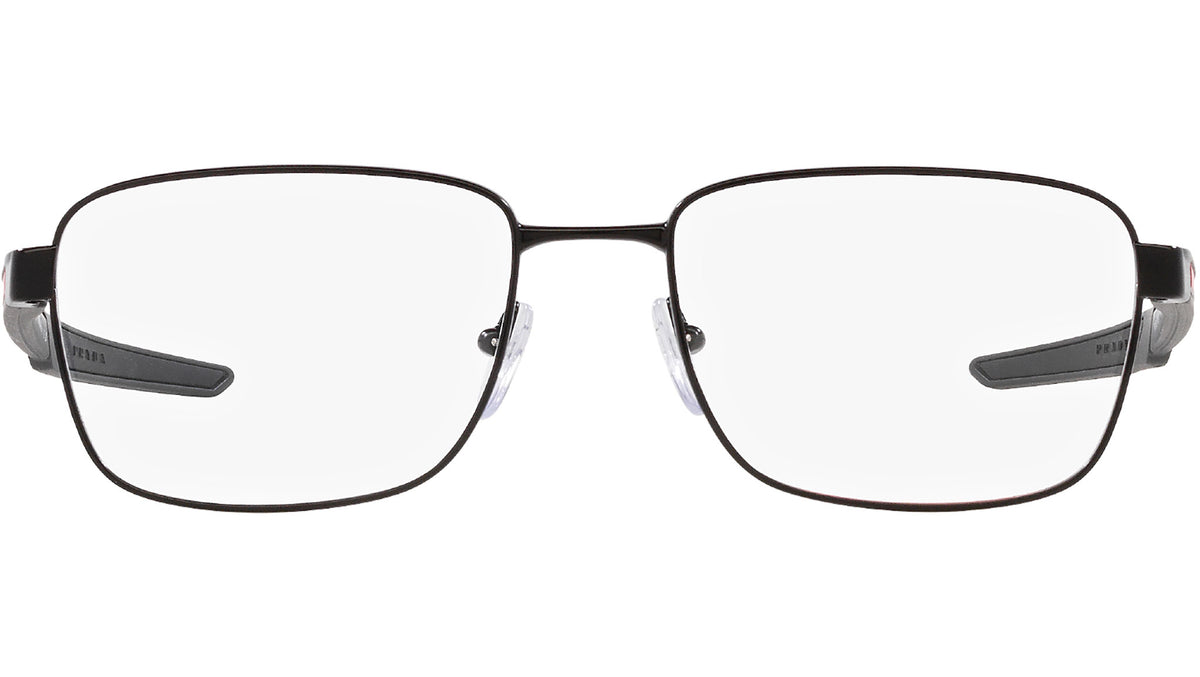Occhiali da vista Prada Linea Rossa modello PS 54OV codice colore 1BO1O1 con montatura d-frame full rim in metallo color nero opaco e lenti demo. Rivenditore autorizzato Prada. Ogni prodotto Prada Linea Rossa viene consegnato con astuccio originale e accessori.