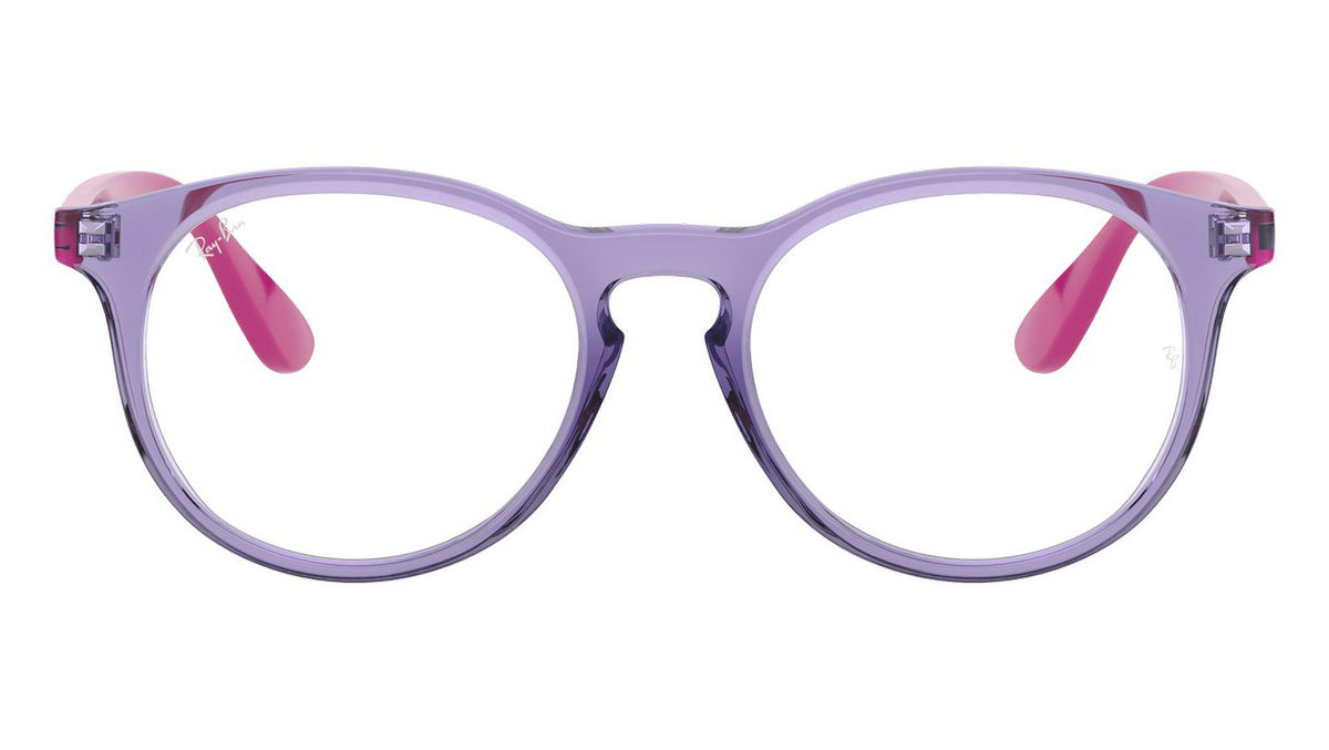 Occhiali da vista Ray-Ban Kids RY1554 color violet trasparente in acetato codice colore 3810. Forma unisex panto full rim con lenti demo. Con custodia originale e garanzia. Rivenditore autorizzato Ray-Ban.