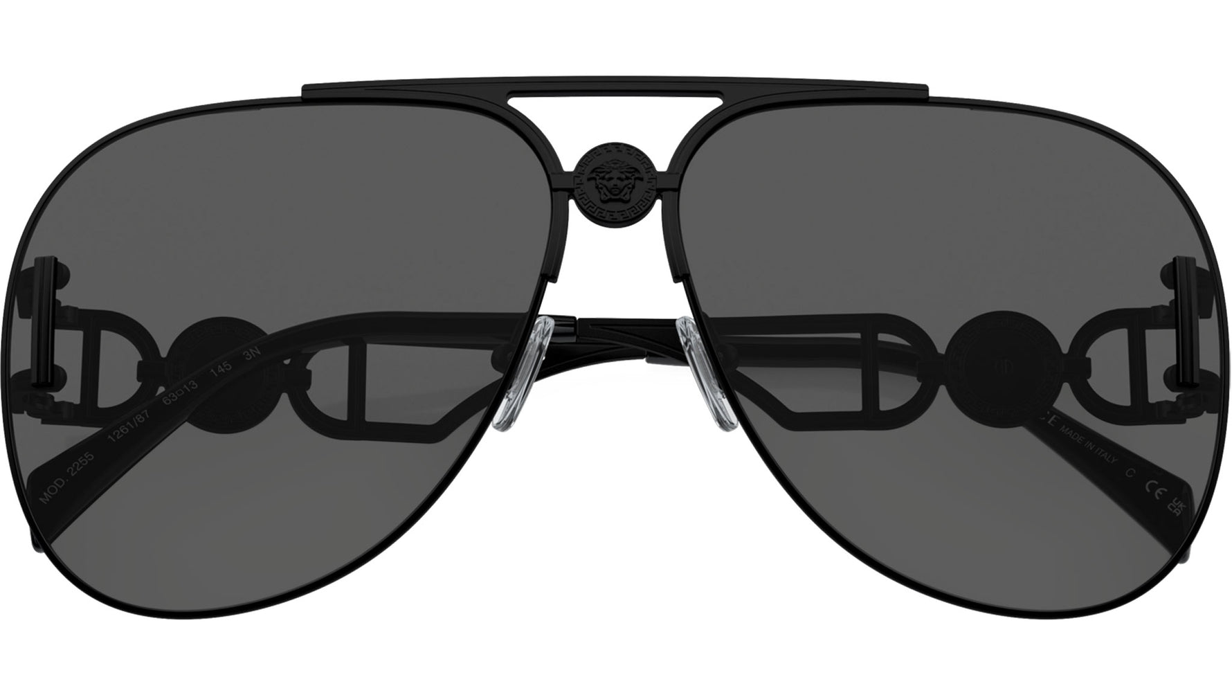 Occhiali da sole Versace unisex modello 2255 full rim in metallo color nero opaco con lenti grigio scuro base 4. Naselli regolabili. Linea: Iconic. Codice brand: 0VE2255. Codice colore: 126187. Rivenditore autorizzato online Versace Eyewear. Ogni prodotto Versace viene consegnato con astuccio originale e accessori ed è coperto da garanzia del produttore di 12 mesi.