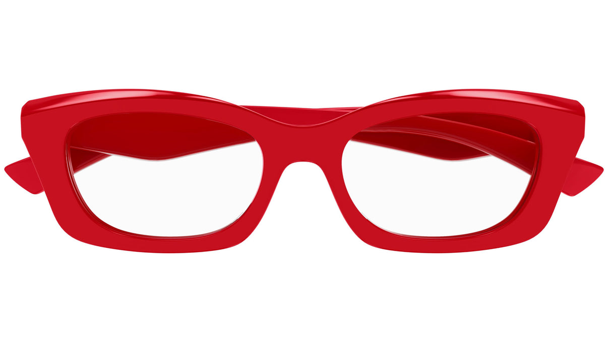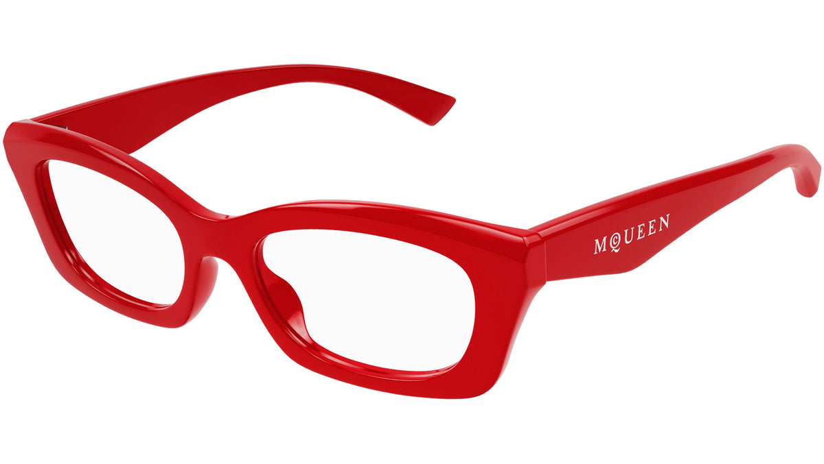 Occhiali da vista Alexander McQueen Casual Lines modello AM0474O in acetato riciclato rettangolare codice colore 003 rosso tinta unita lucido con aste rosso e lenti demo. Rivenditore autorizzato Alexander McQueen online. Gli occhiali vengono consegnati con custodia e accessori originali e sono coperti dalla garanzia ufficiale di 12 mesi del produttore.