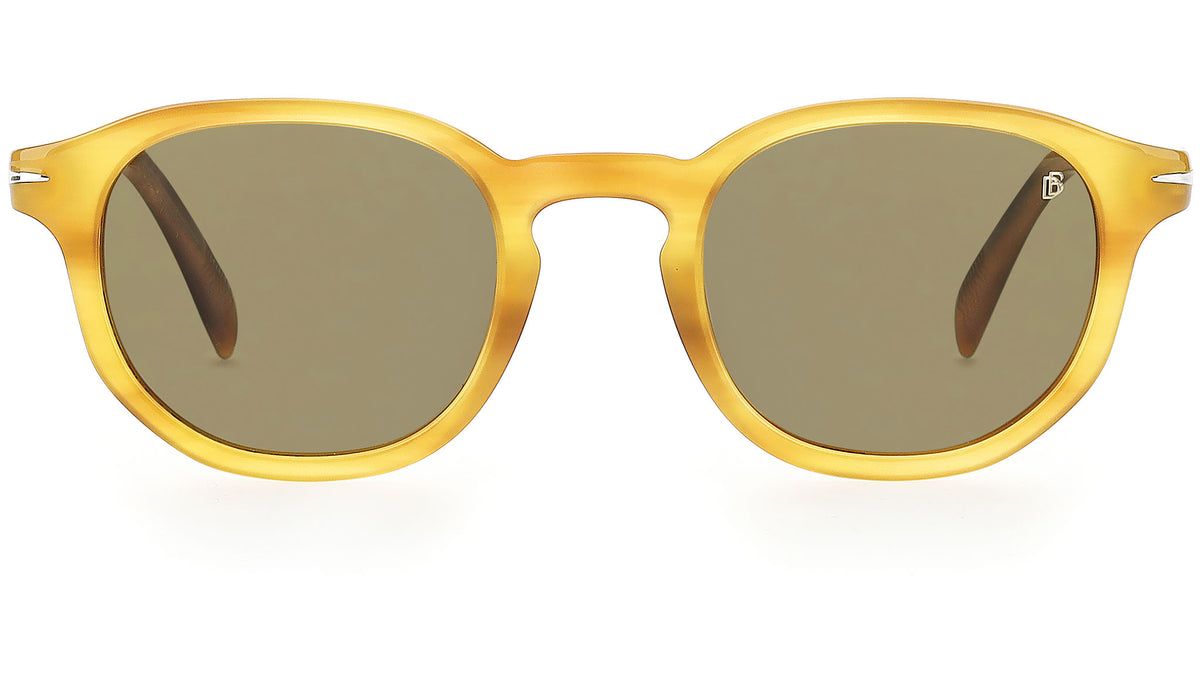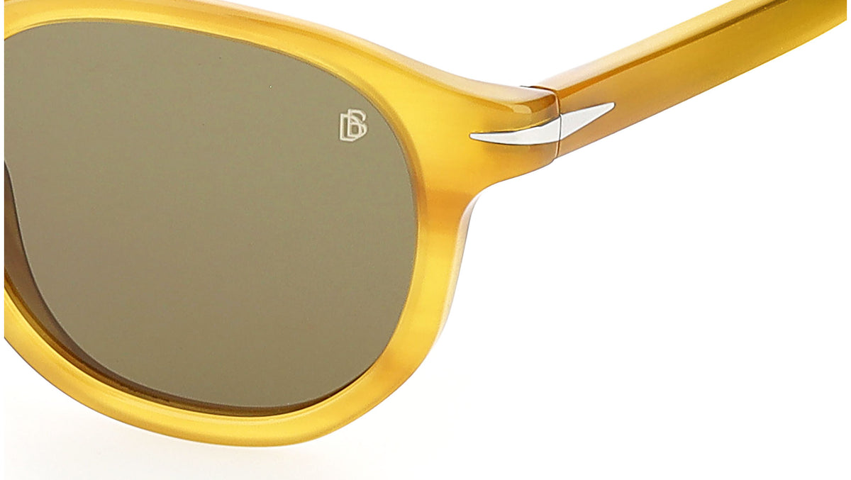 Bold yet timelessly elegant, these sunglasses take the traditional, geometric silhouette to new heights. Fashioned from acetate, the full-rim round frames are paired with a retro keyhole nose bridge and the collection’s signature temples, where a chiselled stainless-steel wire core, engraved with the iconic DB logo, remains subtly visible on the inside.