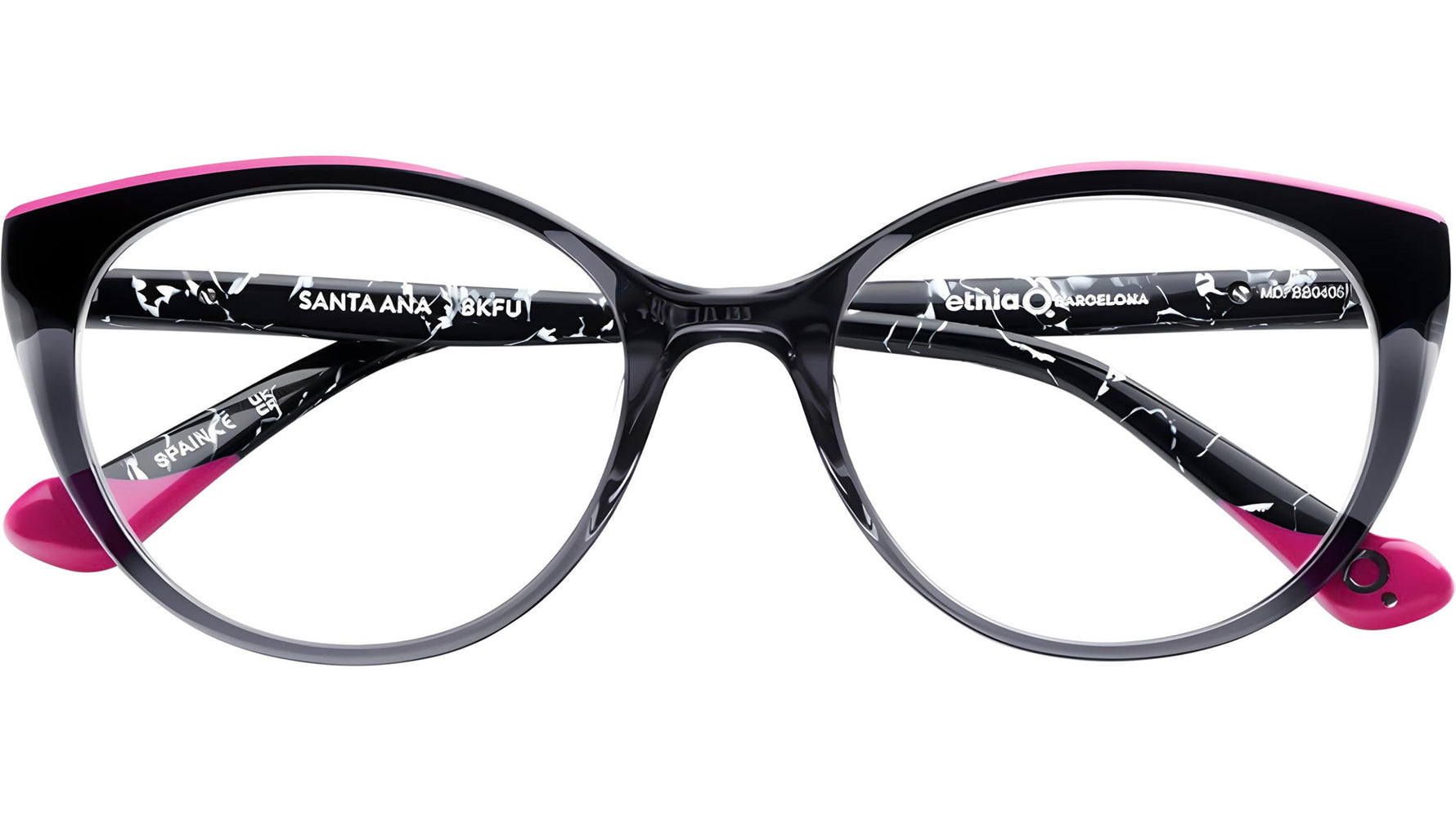 Unit price perOcchiali da vista Etnia Barcelona Santa Ana in acetato nero / fucsia con lenti demo. Codice modello: SANTA ANA 50O. Codice colore: BKFU. Rivenditore autorizzato online Etnia Barcelona. Gli occhiali vengono forniti con custodia e accessori originali e sono coperti dalla garanzia standard del produttore di 12 mesi.