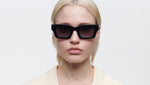 Occhiali da sole Gigi Studios modello 6835 Matilde codice colore 1 in nero. Un occhiale classico di forma square full rim in acetato con lenti grigio sfumato. Il marchio garantisce la massima qualità costruttiva, grazie alla meticolosa selezione dei materiali, in collaborazione con i migliori fornitori italiani, tedeschi e giapponesi. Gigi Studios offre un'esperienza visiva eccezionale con lenti CR-39, confortevoli e sicure, che assorbono efficacemente i raggi UVA e UVB.