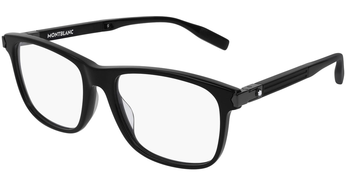 Montblanc Eyewear model MB0035O 001 featuring shiny black frame and black temple. Montblanc revolutionized the culture of writing with breakthrough innovations. Today, the Maison continues to push boundaries and evolve the expression of fine craftsmanship across each of its product categories: the pinnacle of luxury writing instruments, timepieces, leather goods, accessories, fragrances and eyewear.
