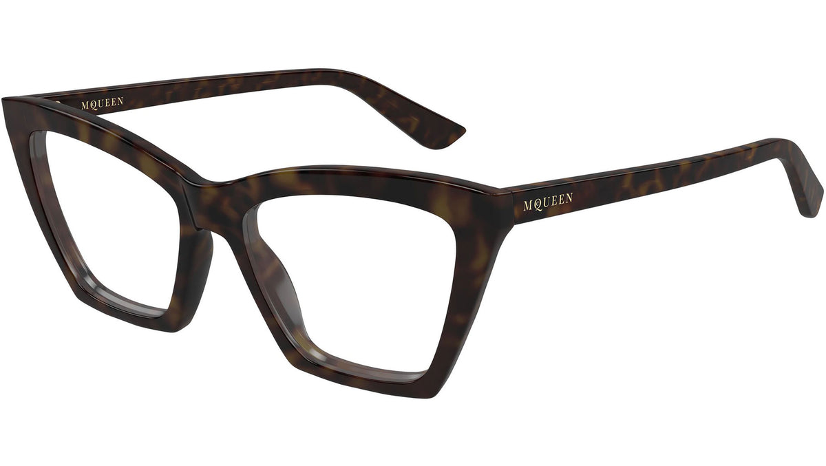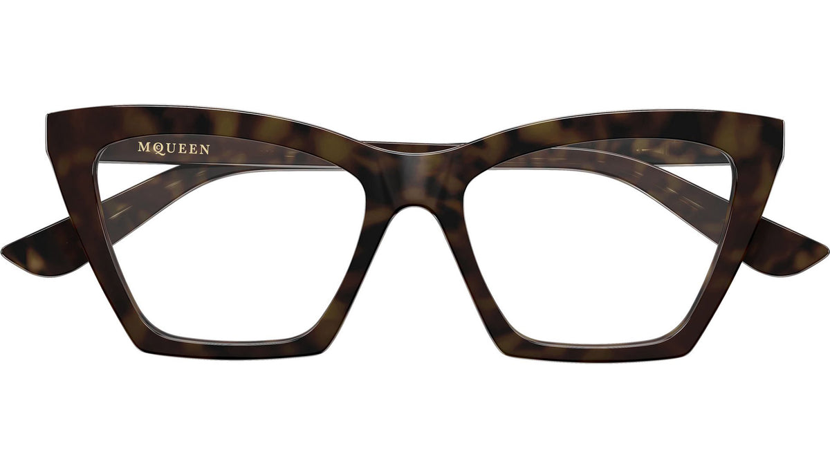 Occhiali da vista Alexander McQueen Logo modello AM0536O in acetato riciclato cat eye codice colore 002 avana scuro lucido con aste avana e lenti demo. Rivenditore autorizzato Alexander McQueen online. Gli occhiali vengono consegnati con custodia e accessori originali e sono coperti dalla garanzia ufficiale di 12 mesi del produttore.