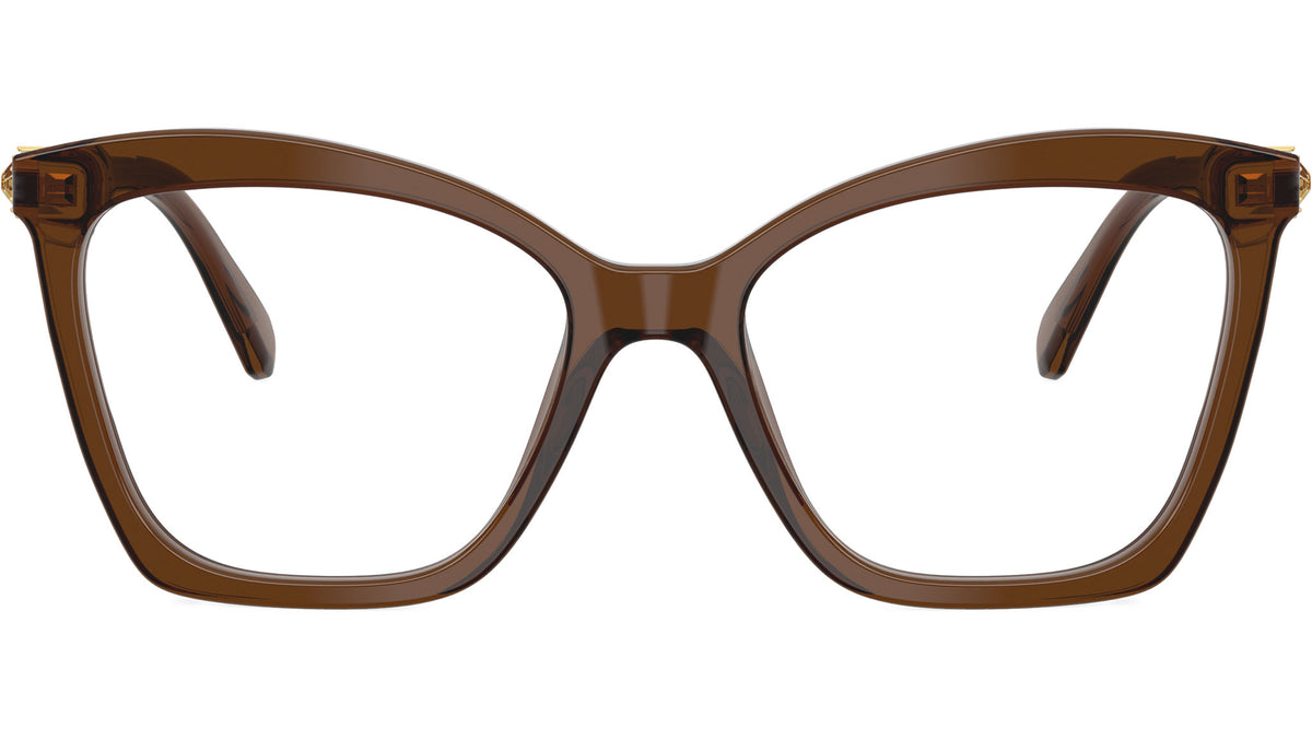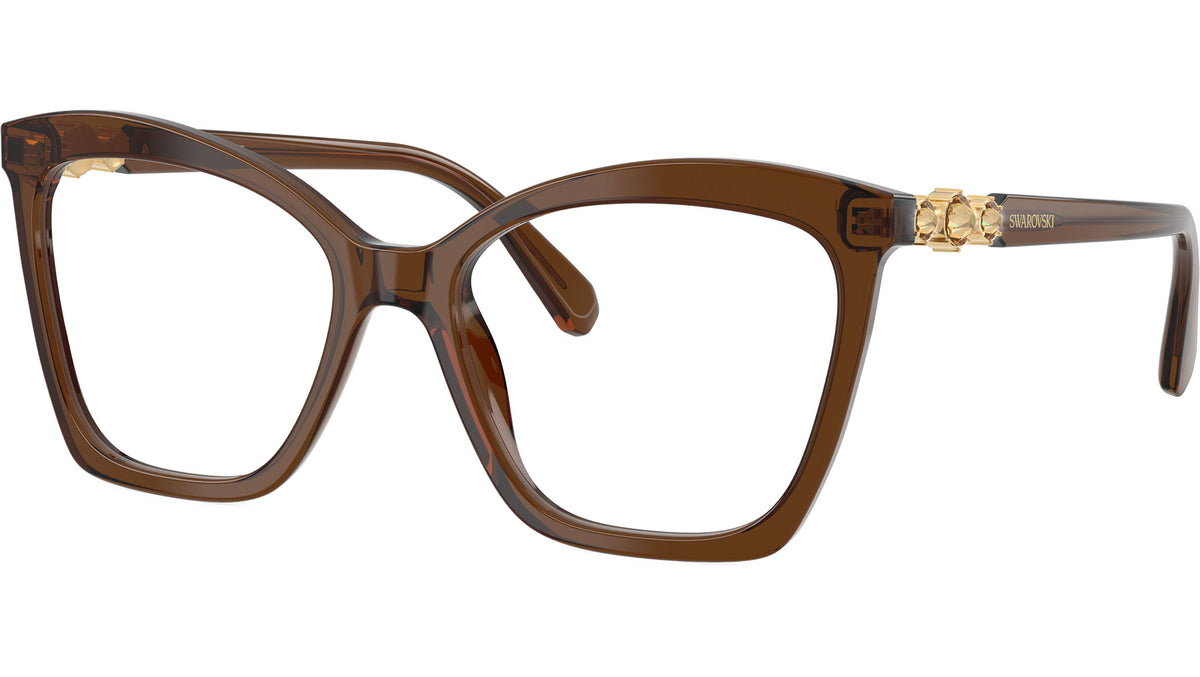 Occhiali da vista Swarovski SK2053 1084 donna, con montatura cat eye in acetato color marrone trasparente e lenti demo. Vestibilità a ponte alto. Linea: Science of Elegance. Codice modello: SK2053. Codice colore: 1084. Rivenditore autorizzato Swarovski Eyewear online. Ogni prodotto Swarovski viene consegnato con astuccio originale e accessori ed è coperto da garanzia del produttore di 12 mesi.