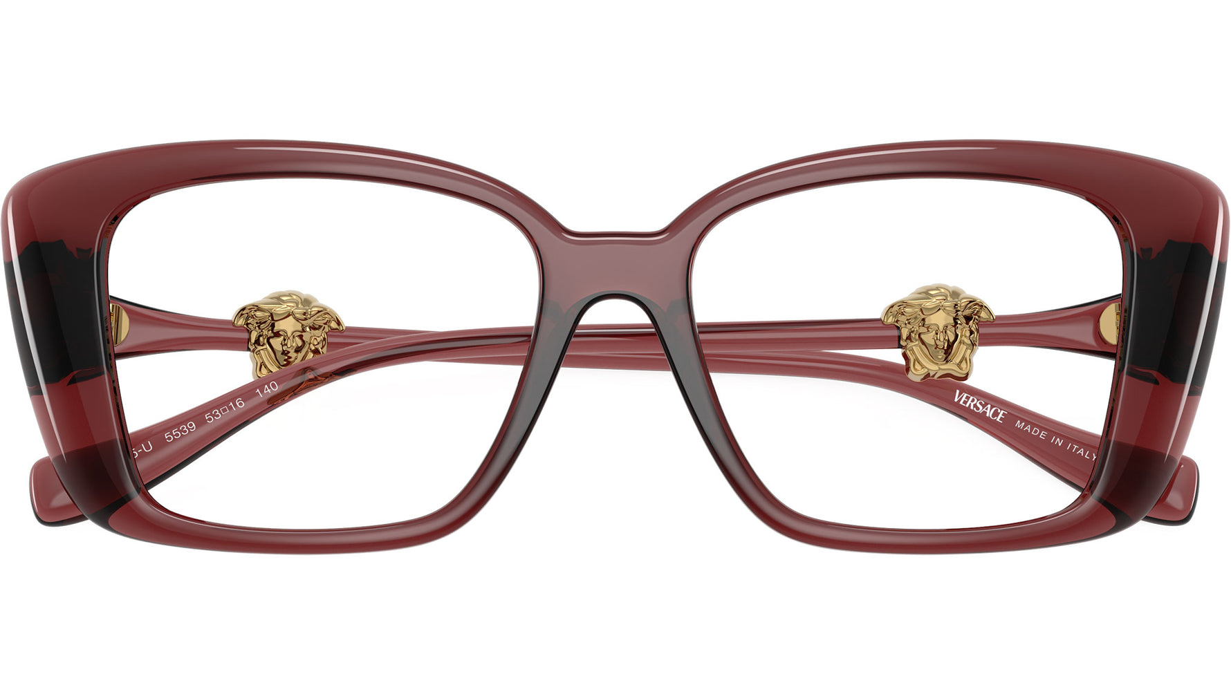 Montatura per occhiali da vista Versace donna modello VE3385U 5539 con montatura squadrata in iniettato rosso trasparente e lenti demo base 4. Fit universale. Linea: Daily Heritage. Codice Brand: 0VE3385U. Codice colore: 5539. Rivenditore autorizzato online Versace Eyewear. Ogni prodotto Versace viene consegnato con astuccio originale e accessori ed Γ¨ coperto da garanzia del produttore di 12 mesi.