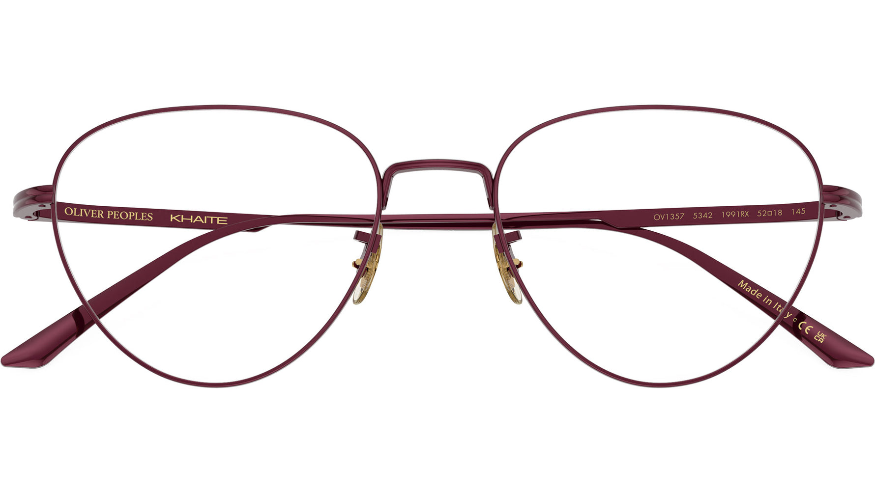 Occhiali da vista Oliver Peoples 1991RX OV1357 5342 donna con montatura pantos in metallo bordeaux spazzolato e lenti demo. Naselli regolabili. Linea: Collaboration. Codice modello: 0OV1357. Codice colore: 5342. Made in Italy. Rivenditore autorizzato Oliver Peoples online. Gli occhiali vengono consegnati con custodia e accessori originali e sono coperti dalla garanzia ufficiale di 12 mesi del produttore.