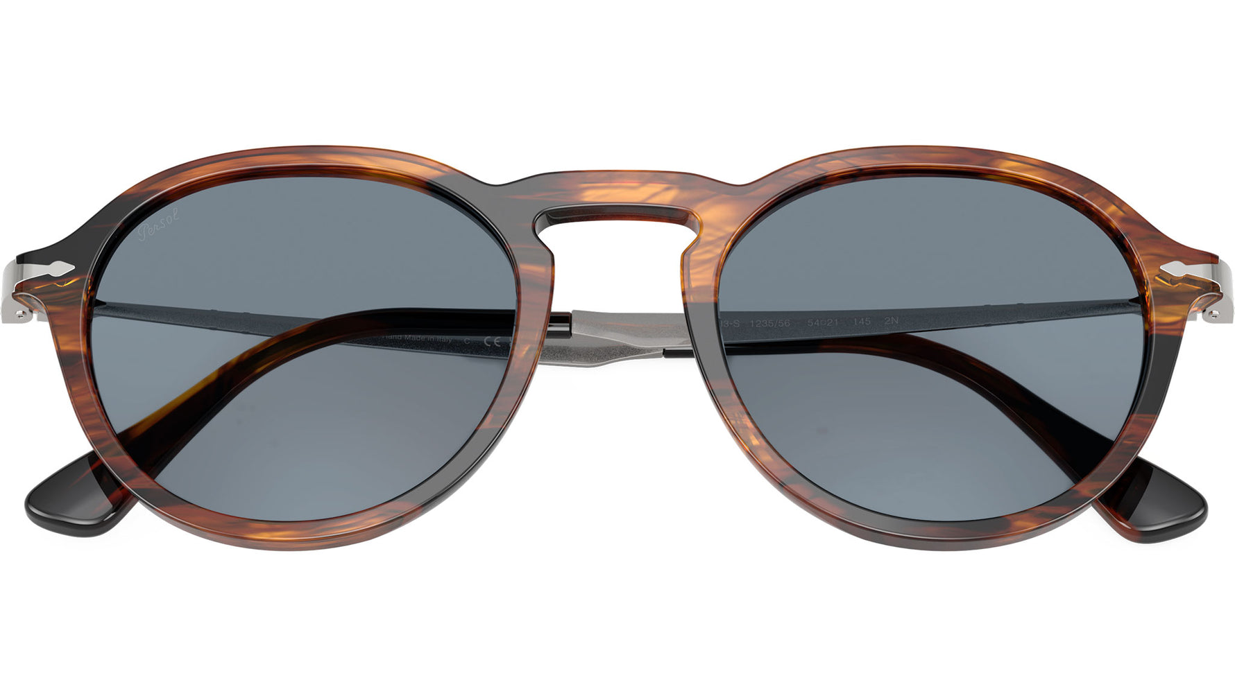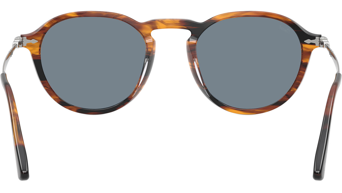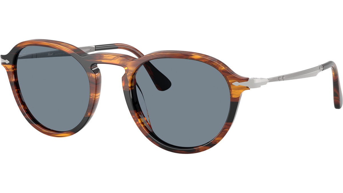 Occhiali da sole Persol unisex modello PO3383S 123556 con montatura panthos in acetato nero striato e marrone e lenti in cristallo azzurro base 4.25. Vestibilità a ponte alto. Linea: Galleria. Codice Brand: 0PO3383S. Codice colore: 123556. Rivenditore autorizzato online Persol Eyewear. Ogni prodotto Persol viene consegnato con astuccio originale e accessori ed è coperto da garanzia del produttore di 12 mesi.