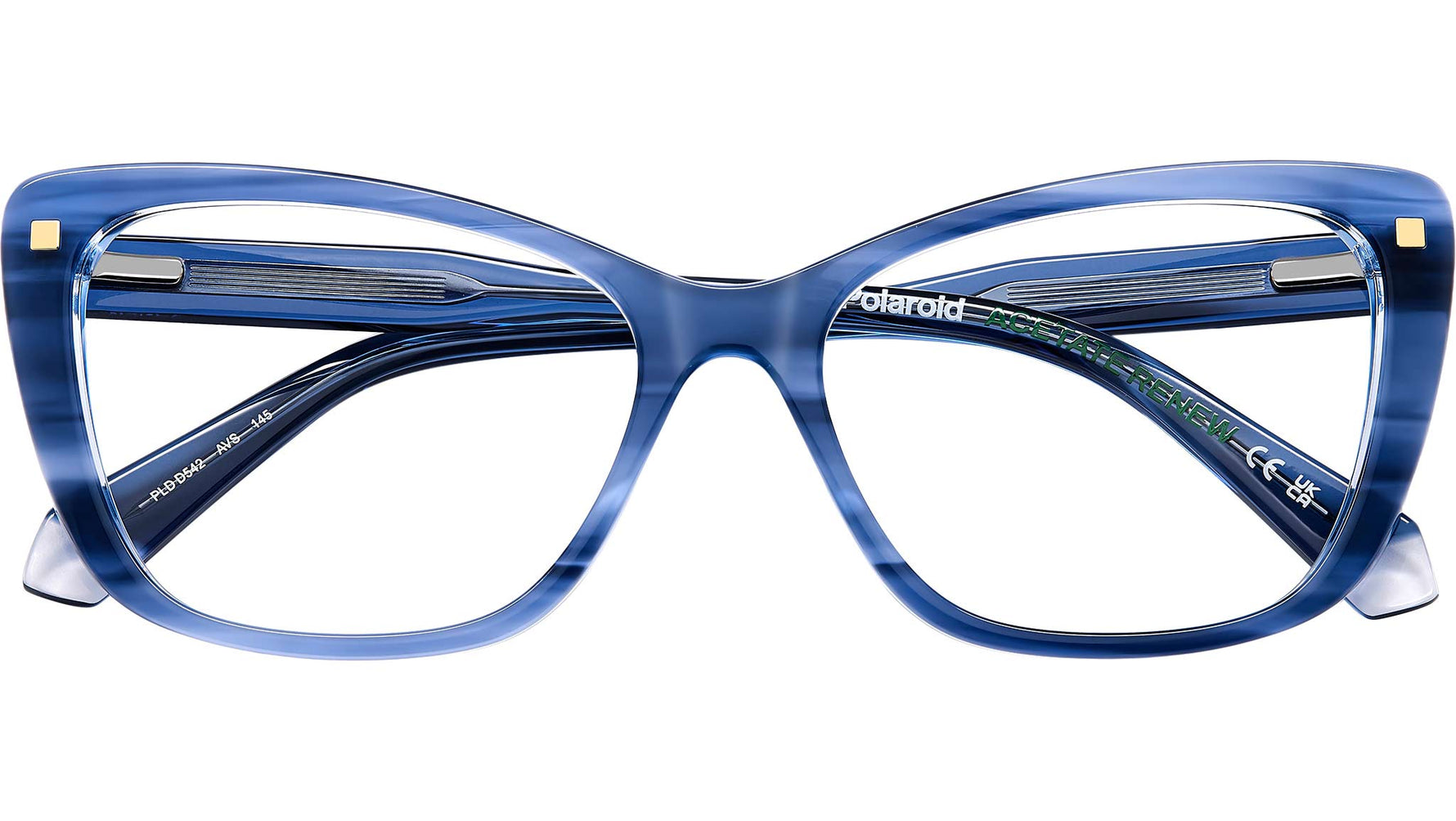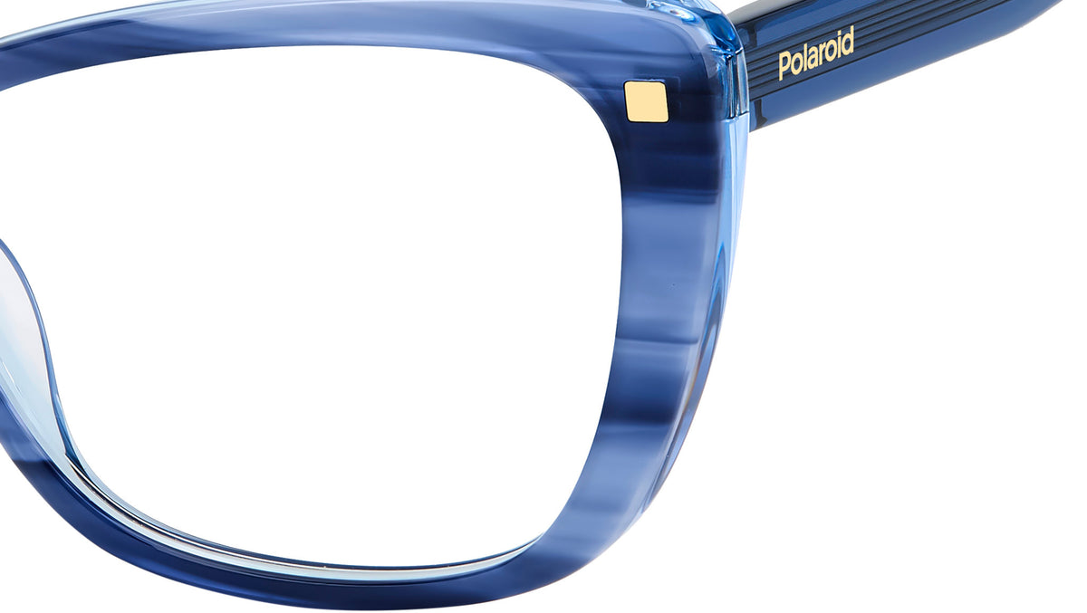 Occhiali da vista Polaroid PLD D542 AVS donna con montatura in blu striato e lenti demo. Difficile resistere al fascino minimal-chic di questi occhiali da vista Polaroid per donna. Sono in eco-acetato, con forma cat-eye vagamente allungata e deliziosi rivetti a completare il frontale. Indossarli è un piacere grazie al comfort delle cerniere flessibili. Il logo Polaroid firma la montatura, irresistibile nella versione con frontale striato, sorprendente nella variante con anima a vista. Linea: Essential. Codice modello: 108826. Codice colore: AVS. Rivenditore autorizzato Polaroid online. Gli occhiali vengono consegnati con custodia e accessori originali e sono coperti dalla garanzia ufficiale di 12 mesi del produttore.