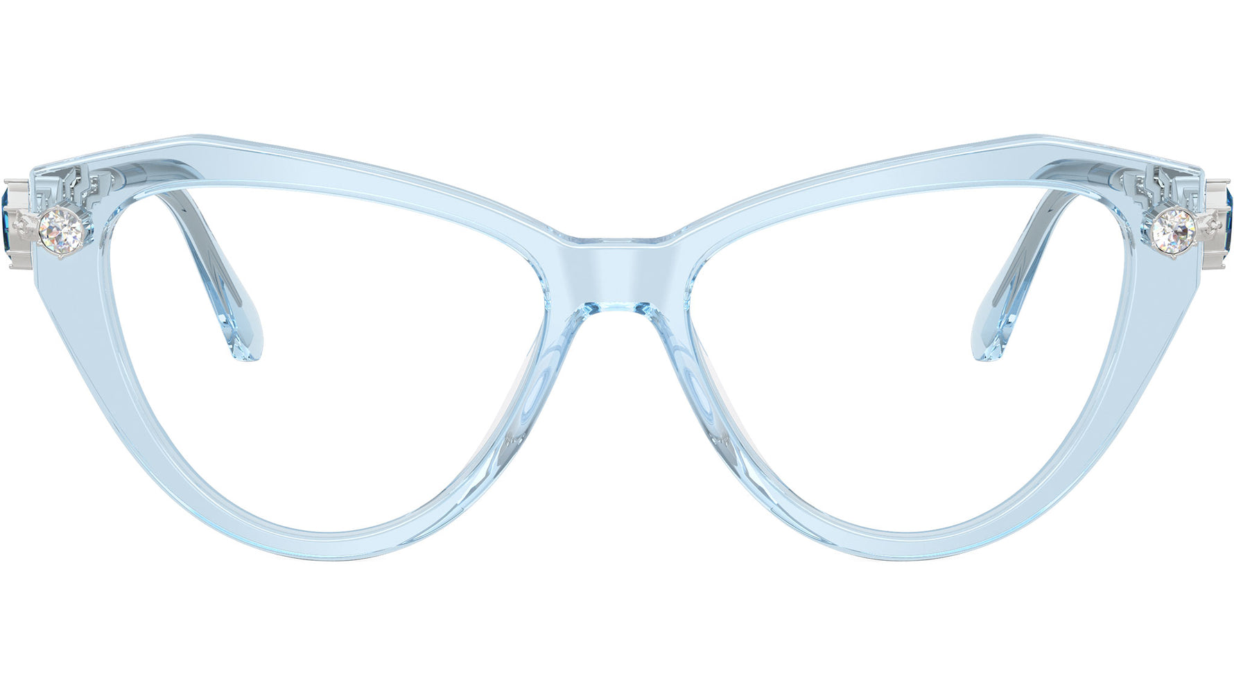 Occhiali da vista Swarovski SK2047 1078 donna, con montatura cat eye in acetato color azzurro trasparente e lenti demo. Vestibilità a ponte alto. Linea: Science of Facets. Codice modello: SK2047. Codice colore: 1078. Rivenditore autorizzato Swarovski Eyewear online. Ogni prodotto Swarovski viene consegnato con astuccio originale e accessori ed è coperto da garanzia del produttore di 12 mesi.
