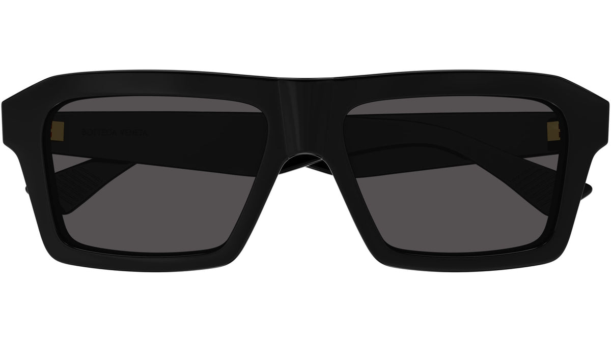 Occhiali da sole Bottega Veneta linea New Classic modello BV1213S variante colore 001 nero lucido tinta unita con lenti color grigio tinta unita.