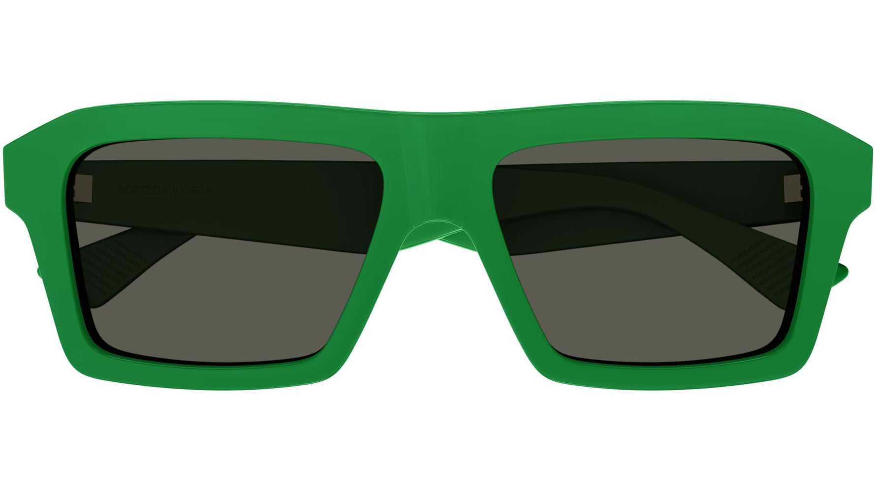 Occhiali da sole Bottega Veneta linea New Classic modello BV1213S variante colore 003 verde tinta unita lucido con lenti color grigio tinta unita toni verdi.