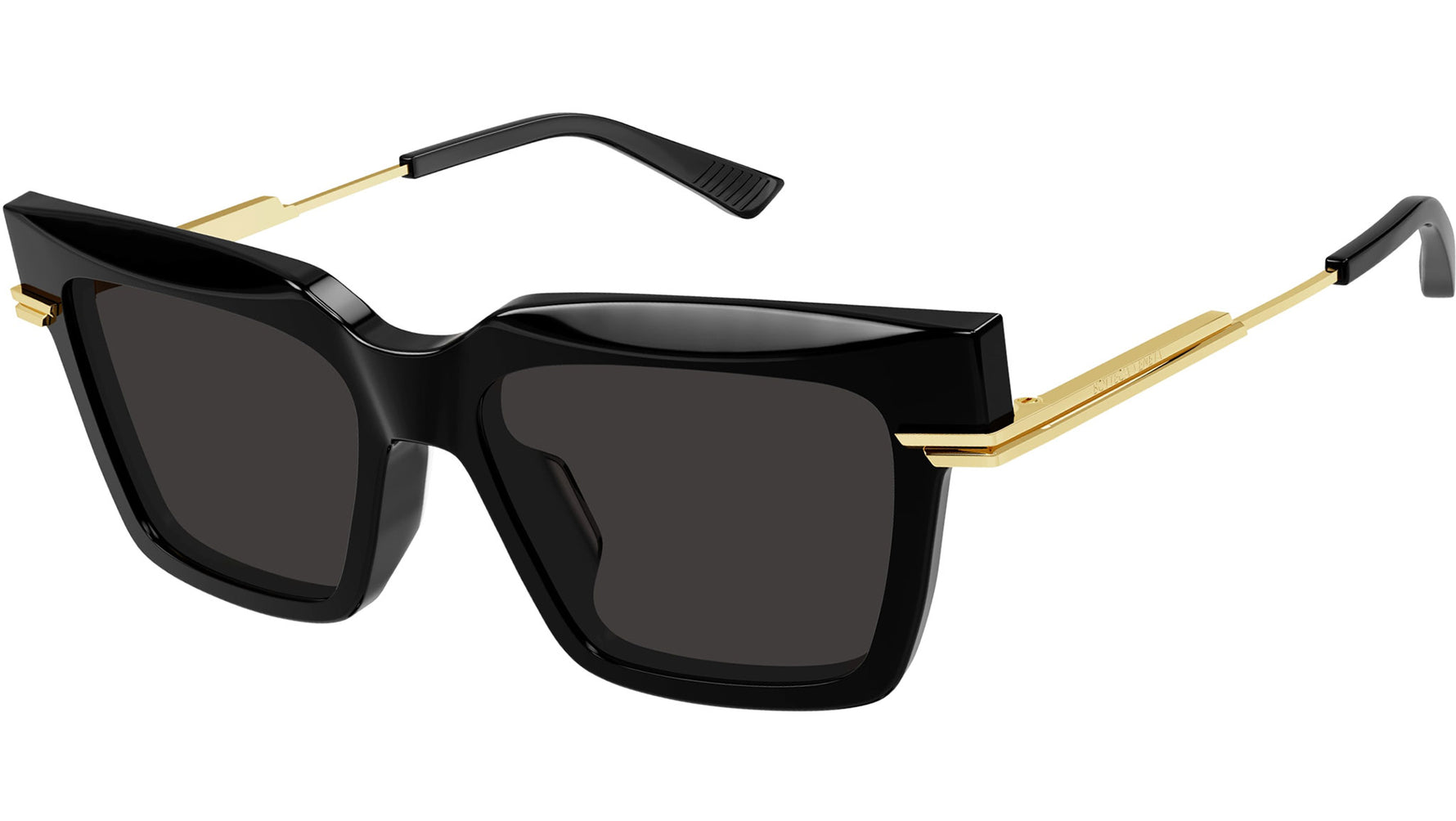 Occhiali da sole Bottega Veneta linea Minimalist modello BV1242S variante colore 001 nero lucido tinta unita con lenti color grigio tinta unita.